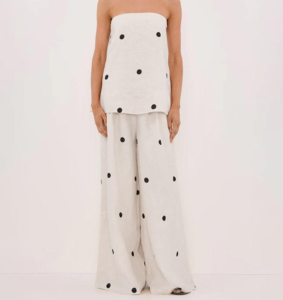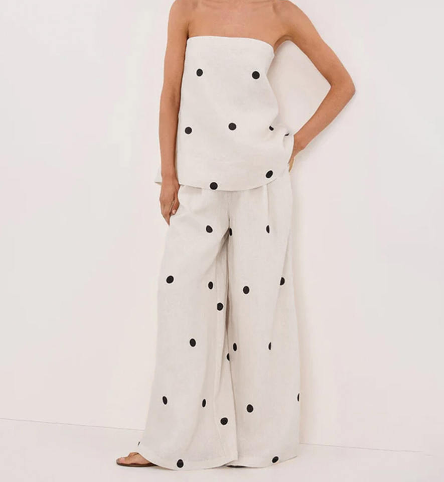 Set di pantaloni asimmetrici senza spalline senza maniche in cotone con volant in cotone Enyami set da donna 2 pezzi