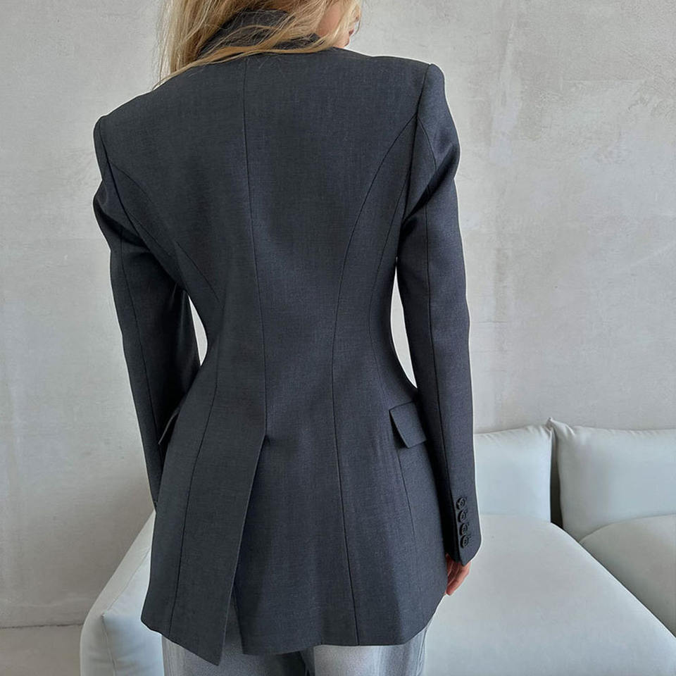 Enyami Women Blazers Ladies Solid Color V-Neck Formal Jackets Blazer Femme Women Business Suit Slim Waist Outfits Women Coat