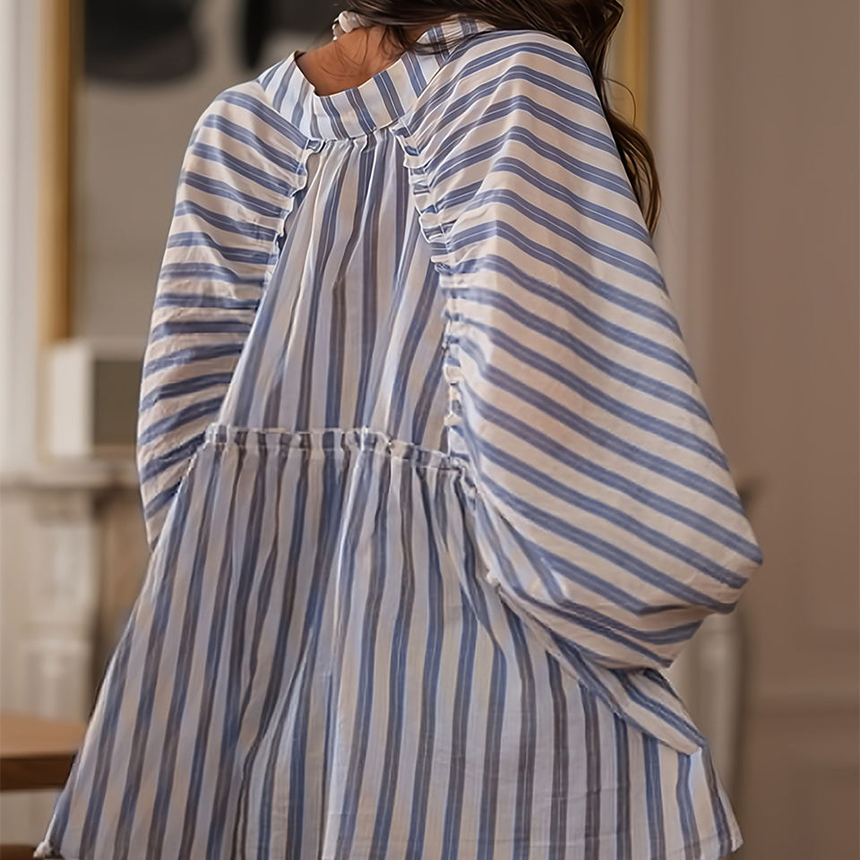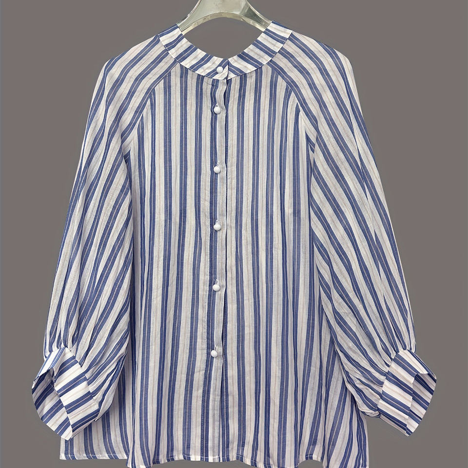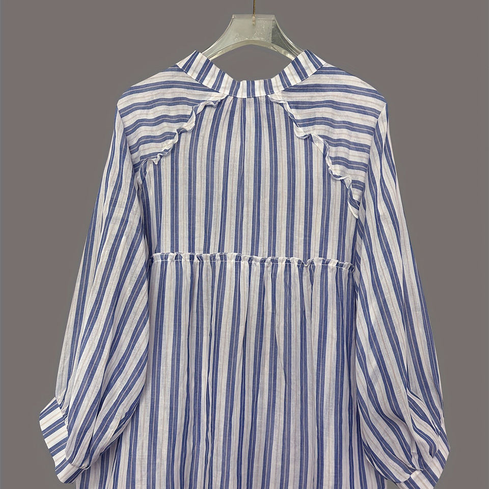 Top a Righe da Donna Enyami, Bluse con Scollo a V e Maniche a Sbuffo, Camicie Larghe e Fluide