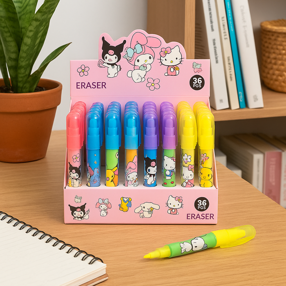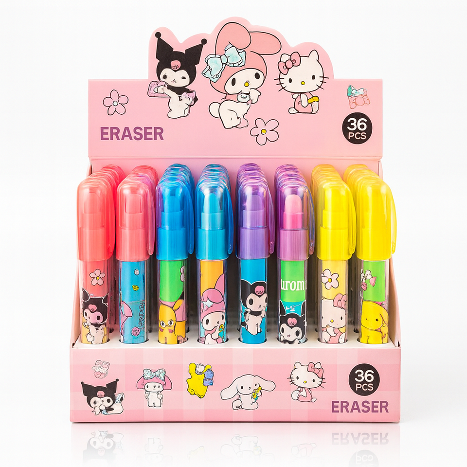 Retractable Eraser Colorful Cartoon Design Durable Clean Writing School Office Stationery Supplies for Kids Students Gift