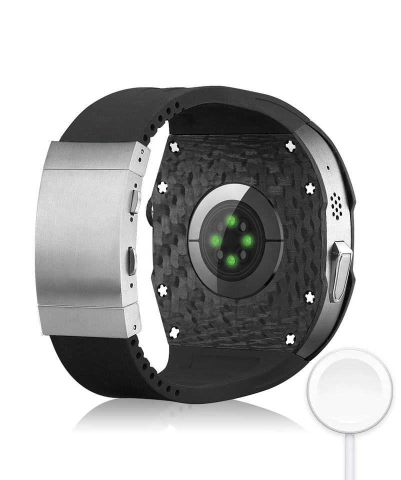 Eraysun modifica di lusso anello in fibra di carbonio inferiore + custodia in titanio + Fluororubber cinturino per orologio Apple Watch Ultra 49mm