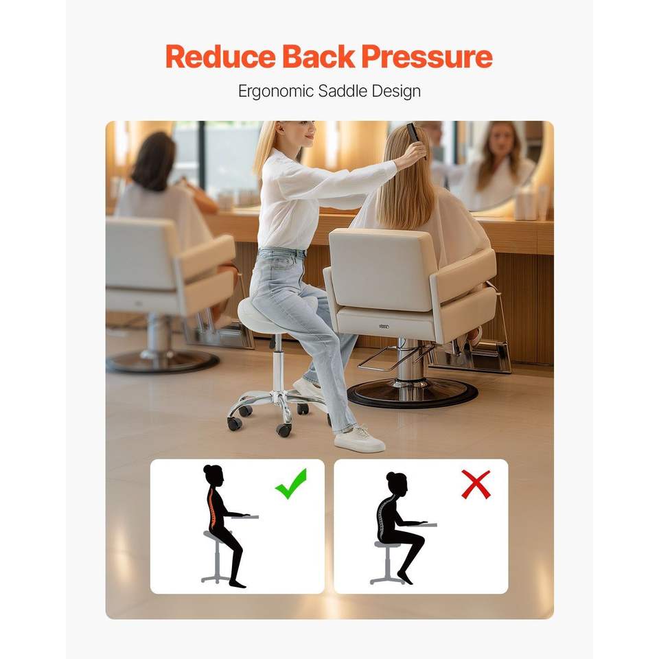 Sgabello Ergonomico Girevole con Capacità di Carico 450 LBS, in Pelle PU, con Ruote e Altezza Regolabile, per Salone