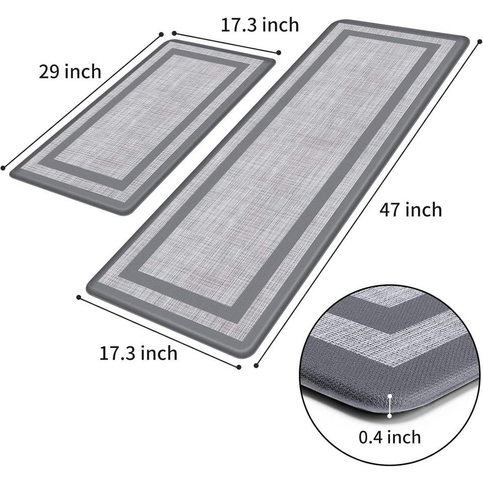 Set di 2 Tappetini Ergonomici per Cucina, Antifatica e Antiscivolo, per Pavimento, Ufficio e Lavello