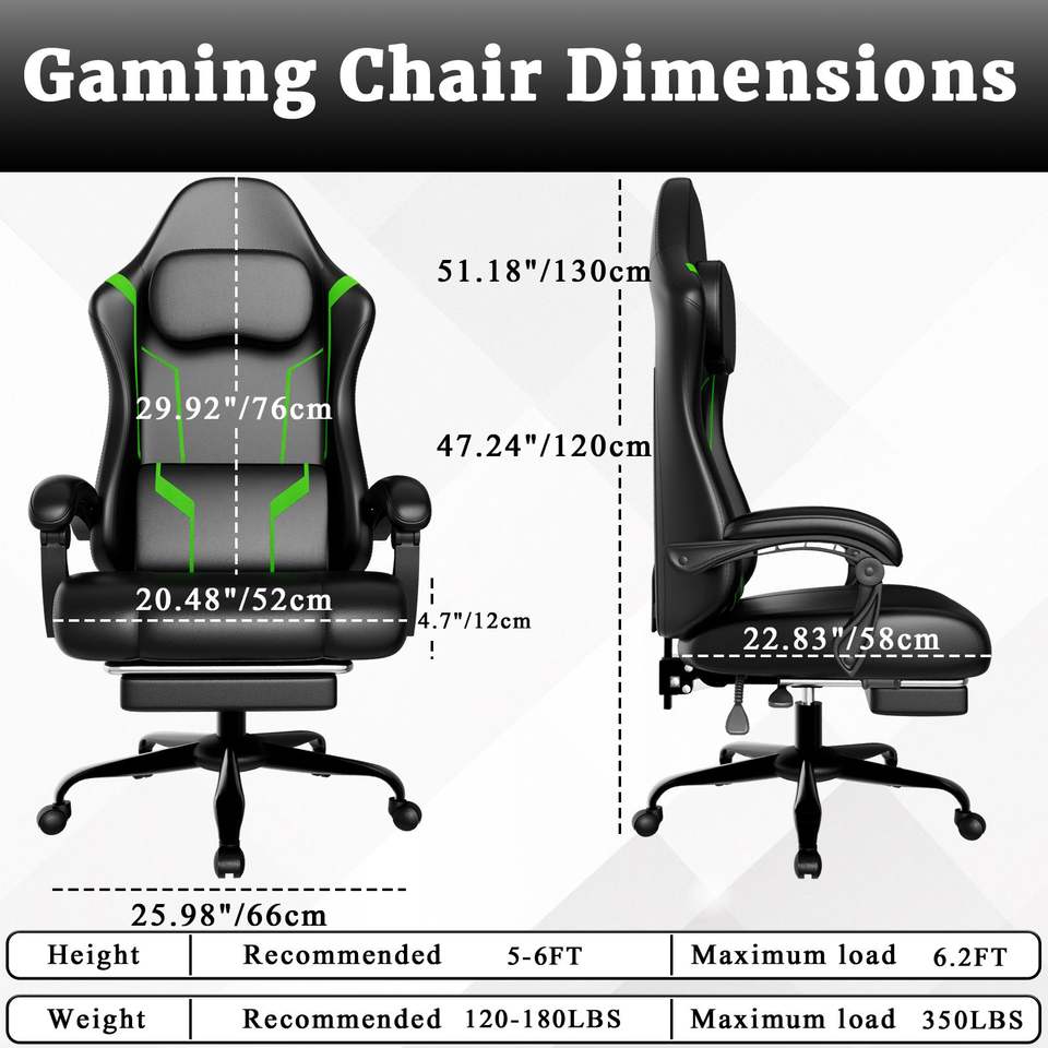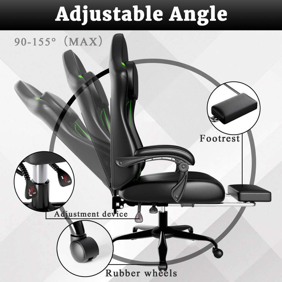 Sedia da Gaming Ergonomica Elettronica Regolabile in Altezza con Cuscino a Molle e Poggiapiedi