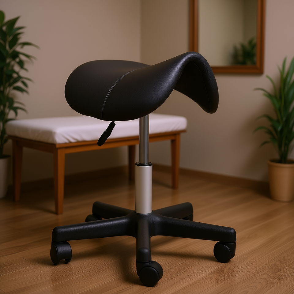 Ergonomic Faux Leather Rolling Saddle Stool Adjustable Height Swivel Salon Chair For Spa Massage Use Model D0100H5H5Y6
