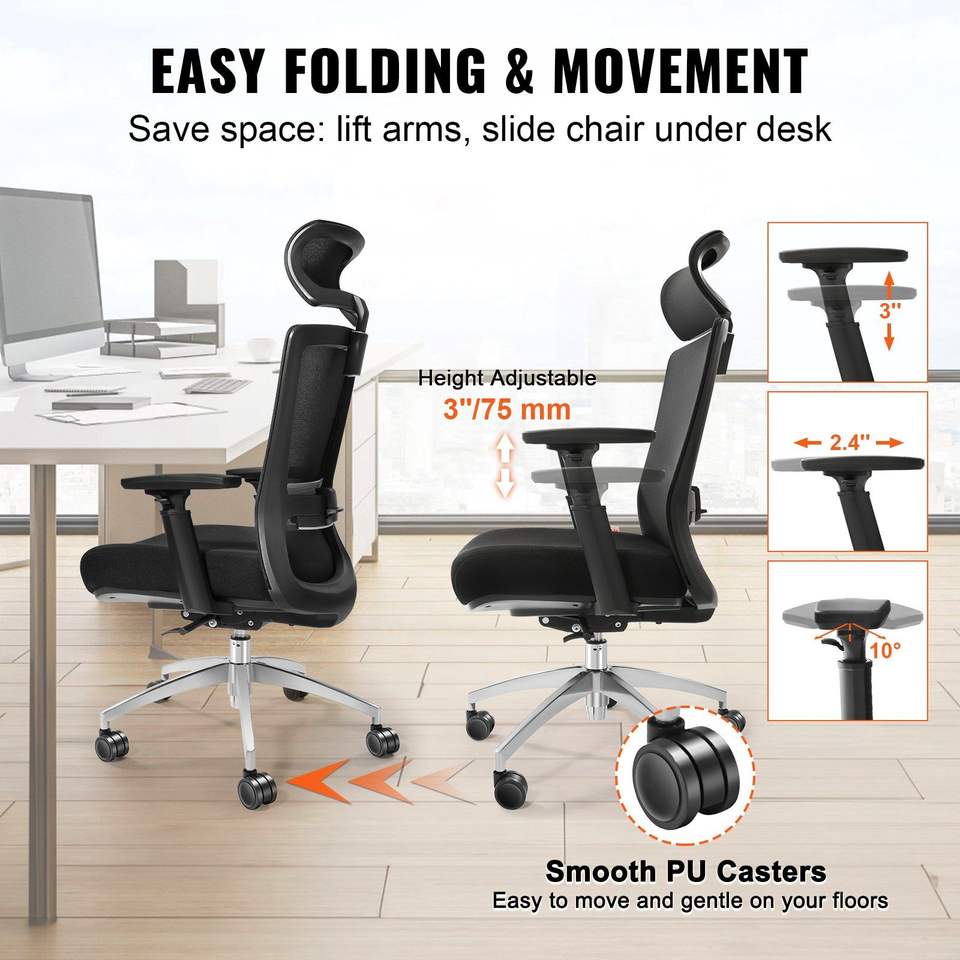 Sedia da Ufficio Ergonomica con Seduta in Rete, Sedile Scorrevole e Schienale Regolabile in Altezza e Angolazione per Casa o Ufficio