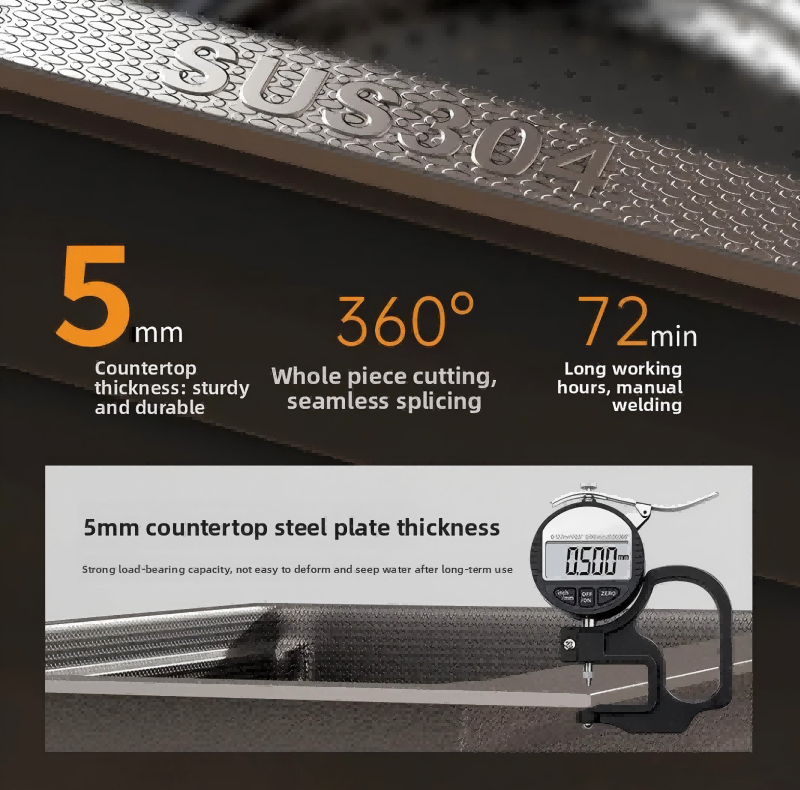 Lavello da Cucina Ergonomico Monoblocco Senza Curvatura in Acciaio Inox 304, Doppio Gradino, Nano, Fatto a Mano, Sottopiano, Senza Rubinetto
