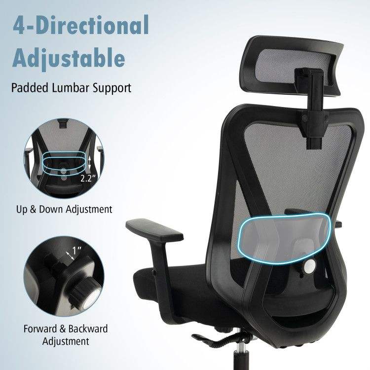 Sedia da Ufficio Ergonomica con Schienale Reclinabile in Rete, Girevole e Regolabile, Comoda Sedia da Lavoro