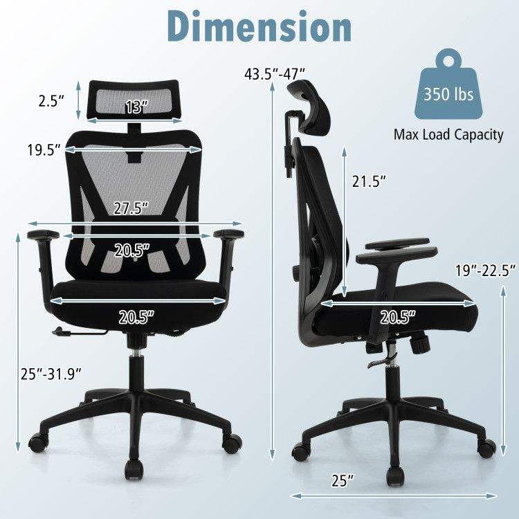 Sedia da Ufficio Ergonomica con Schienale Reclinabile in Rete, Girevole e Regolabile, Comoda Sedia da Lavoro
