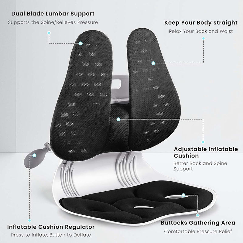 Ergonomic Orthopedic Office Chair Cushion Soft Breathable Polypropylene Elastic Back Brace Lumbar Support Adjustable Height