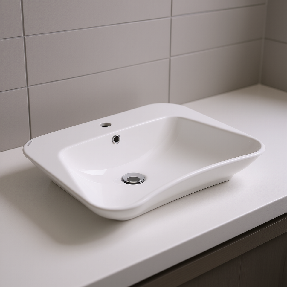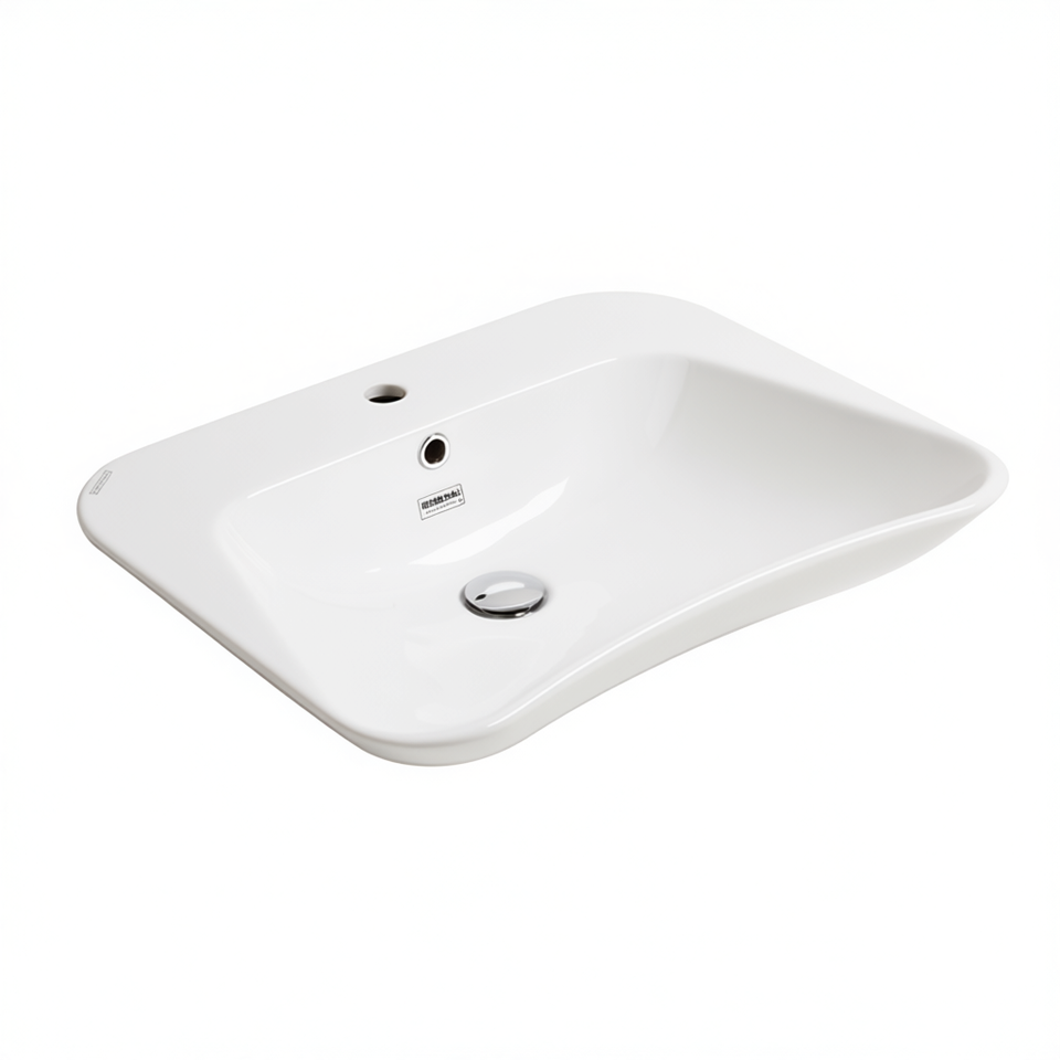Lavabo Ergonomico Monoforo da 62 cm, Moderno per Bagno