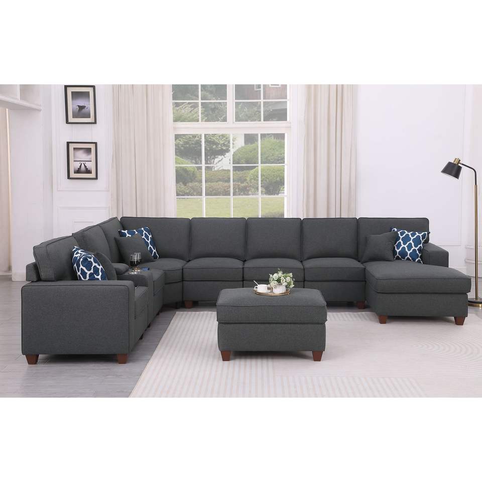 Eric 9-Piece Living Room Sofa Set Upholstered Sectional with Ottoman