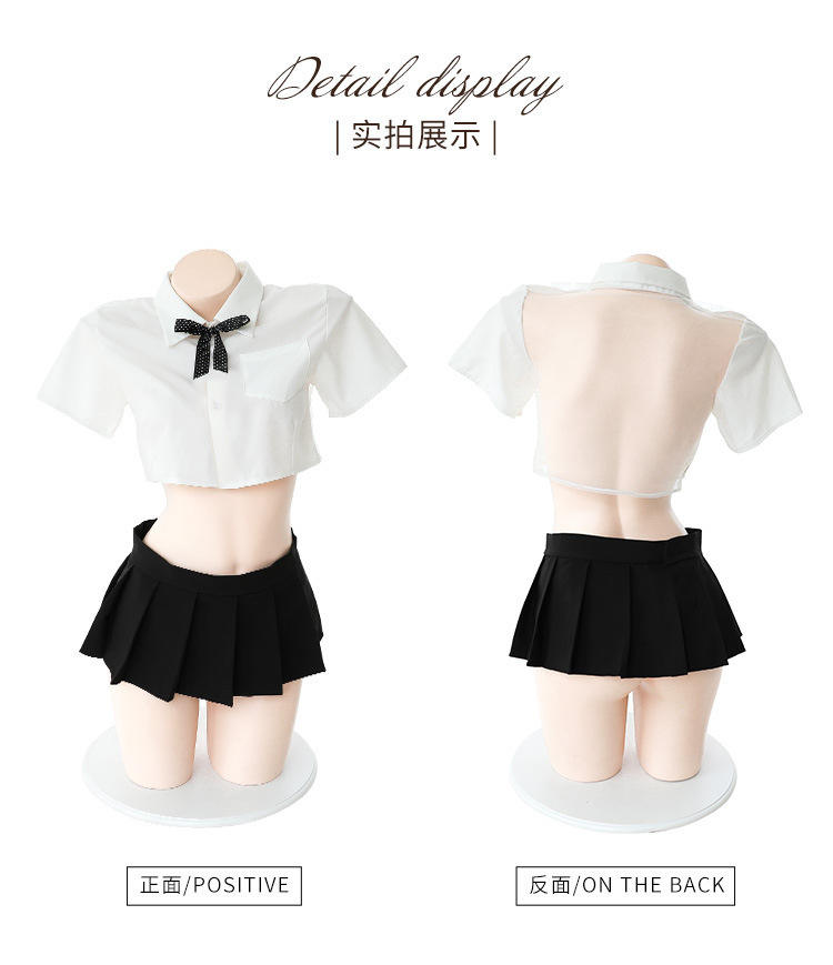 Lingerie Erotica in Pizzo Uniformi Nere con Volant Camicie Opache Senza Schienale Costumi Sexy per Giochi di Ruolo in Poliestere