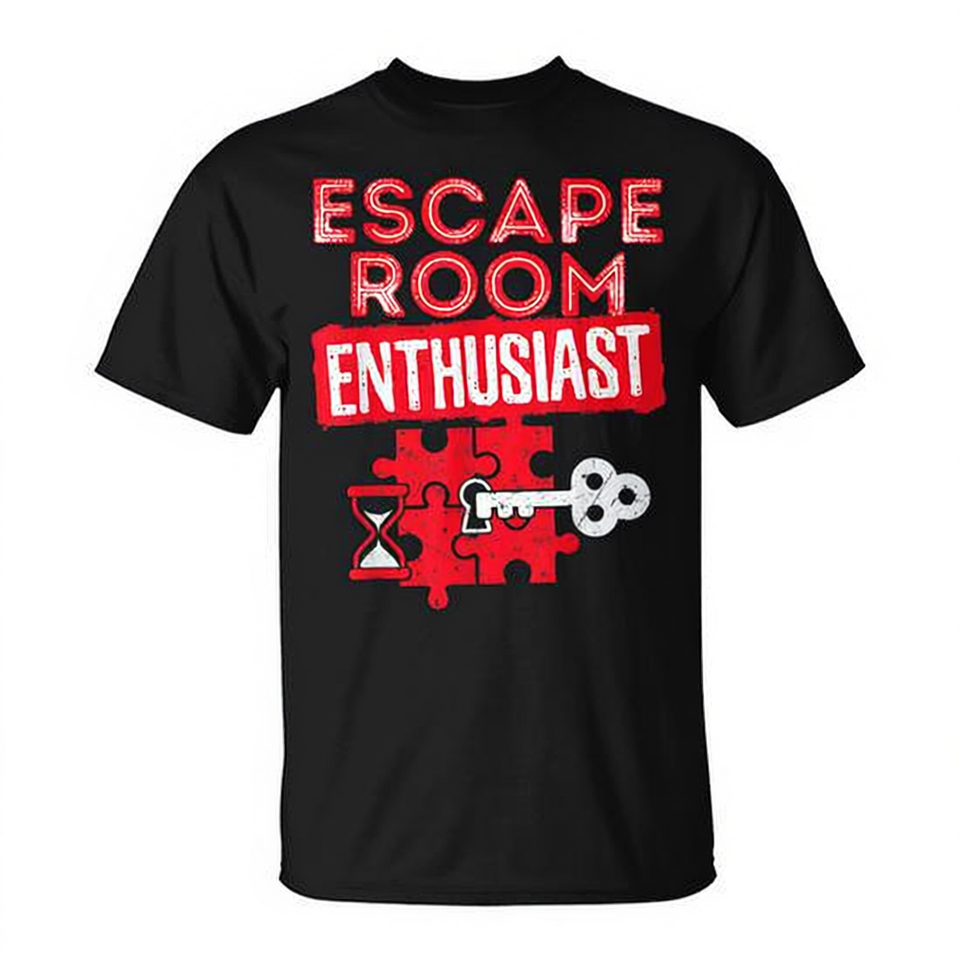 T-shirt per appassionati di Escape Room, puzzle, per adulti, unisex, nera