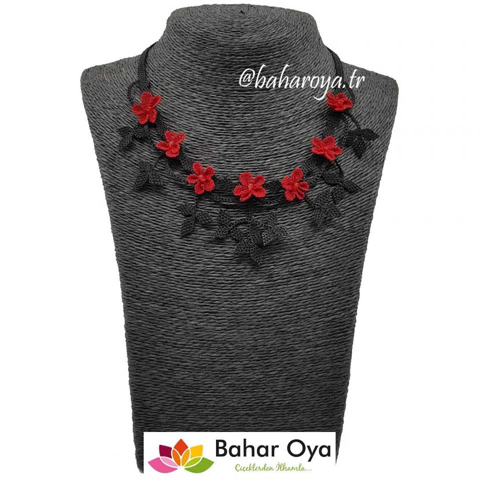 Esen Kolye Kırmızı-Siyah İğne Oyası Moda Kolaylıkla Kullanılabilecek Halka İlişkili Kolye