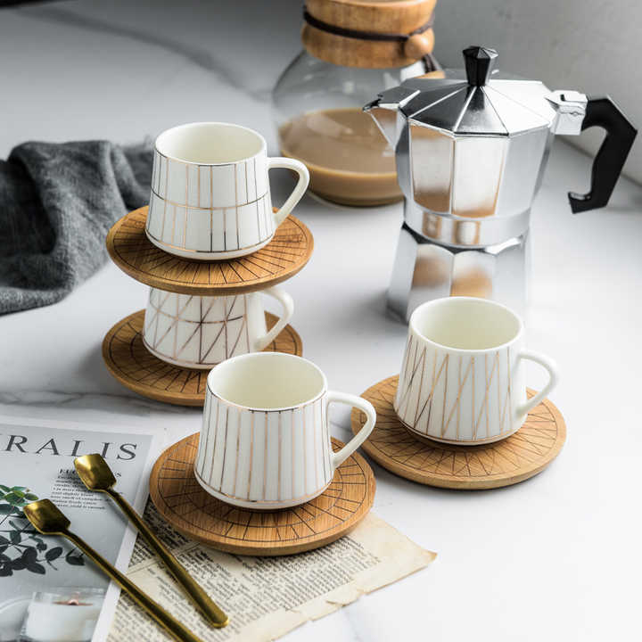 Espresso Caffè In Porcellana Tea Set con Oro Decorazione Turco Tazza di Ceramica e Piattino Set