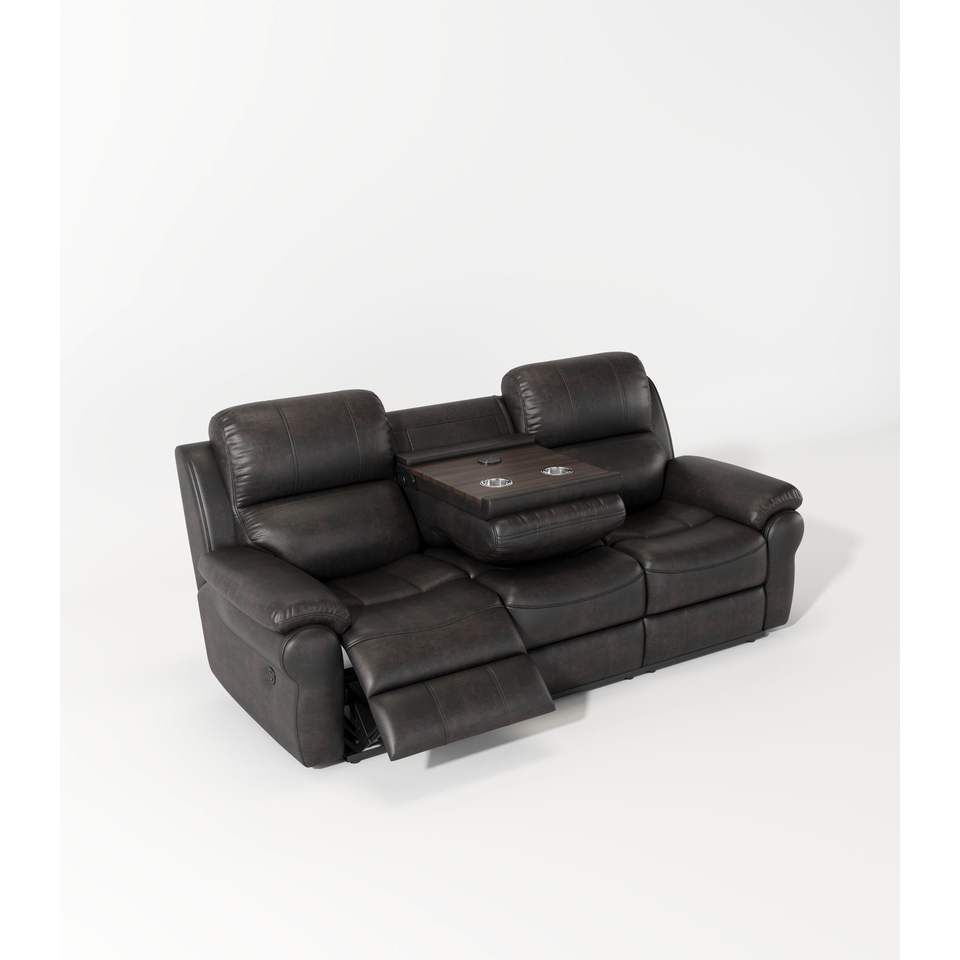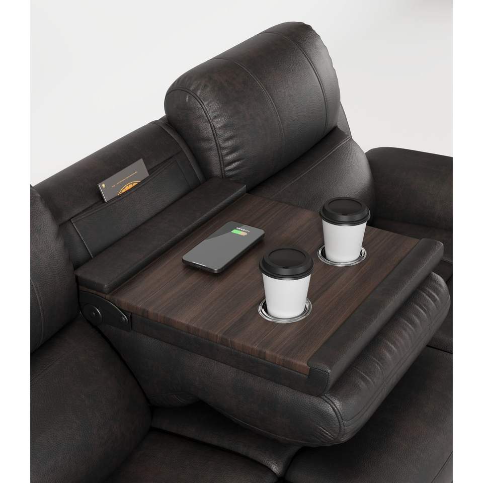 Espresso Power Reclining Sofa with Breathable Fabric Drop Down Table USB Button Wireless Charger