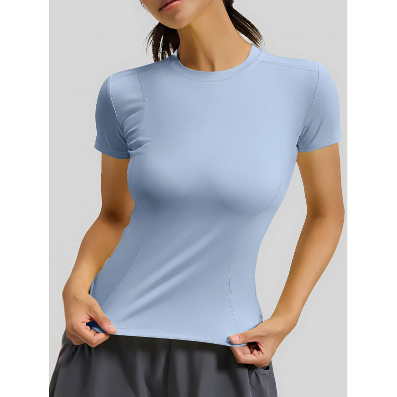 Essential Fit Women's Yoga Top Crew Neck Short Sleeve Black Compression Sweat-Wicking Breathable Four-Way Stretch