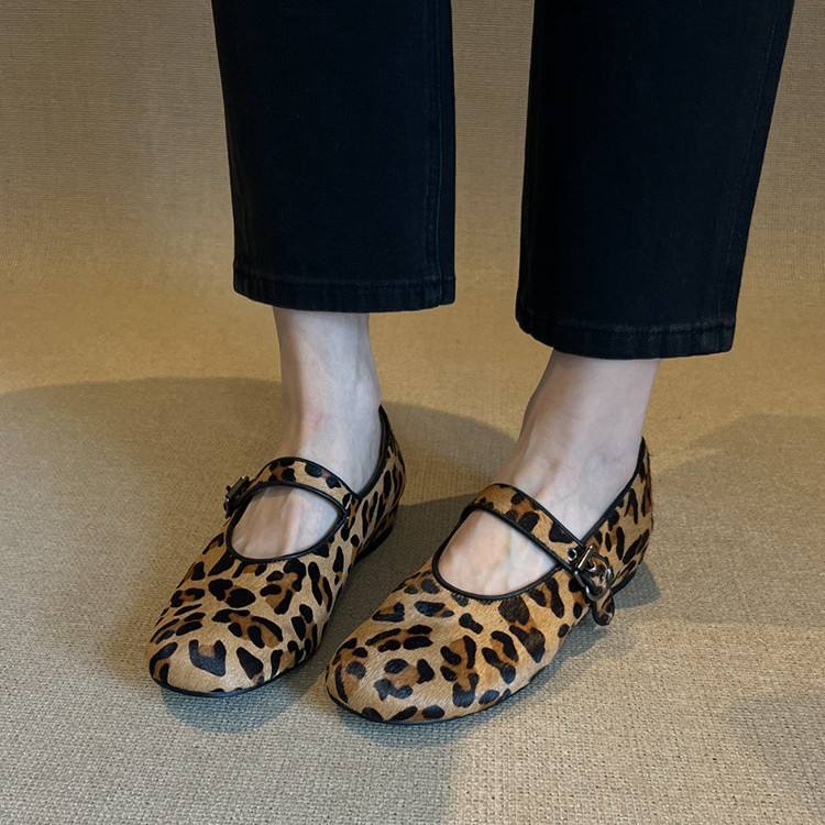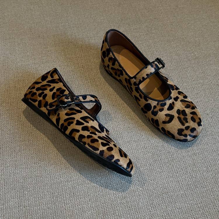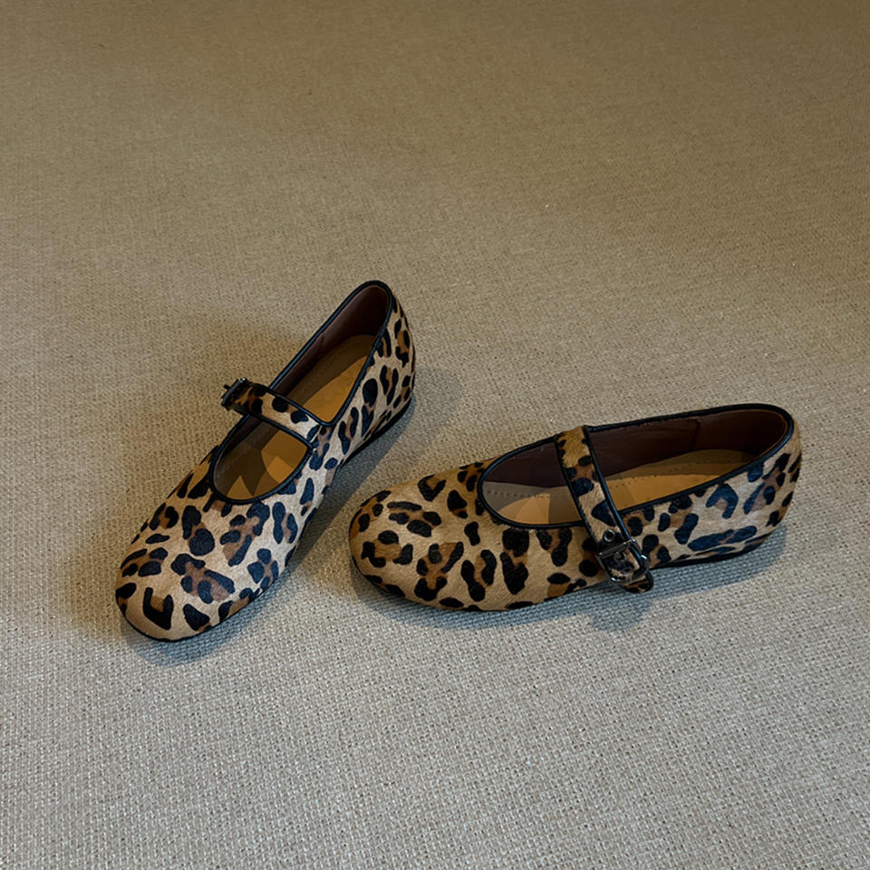 Ballerine Mary Jane con Stampa Leopardata Essenziale, Scarpe da Balletto con Cinturino a Fibbia per Donne