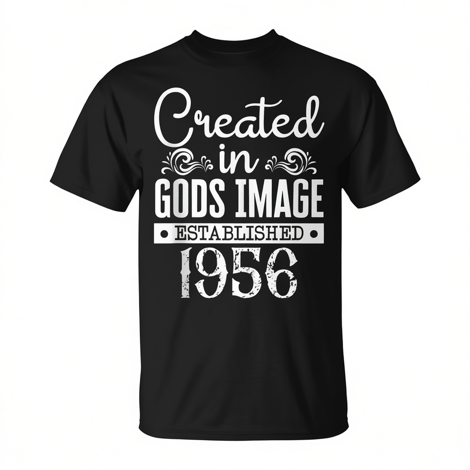 Maglietta Promozionale con Design 'Creato nell'Immagine di Dio', Nata nel 1956, Ispirata ai Principi Cristiani