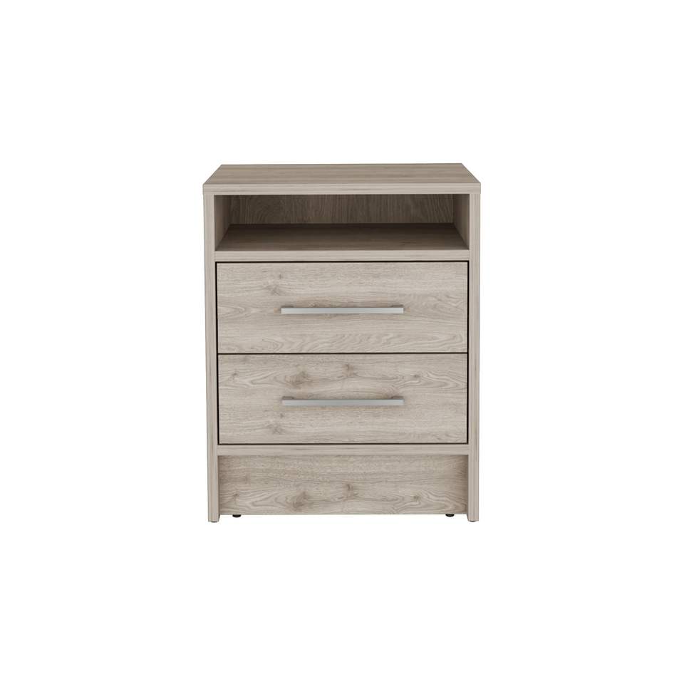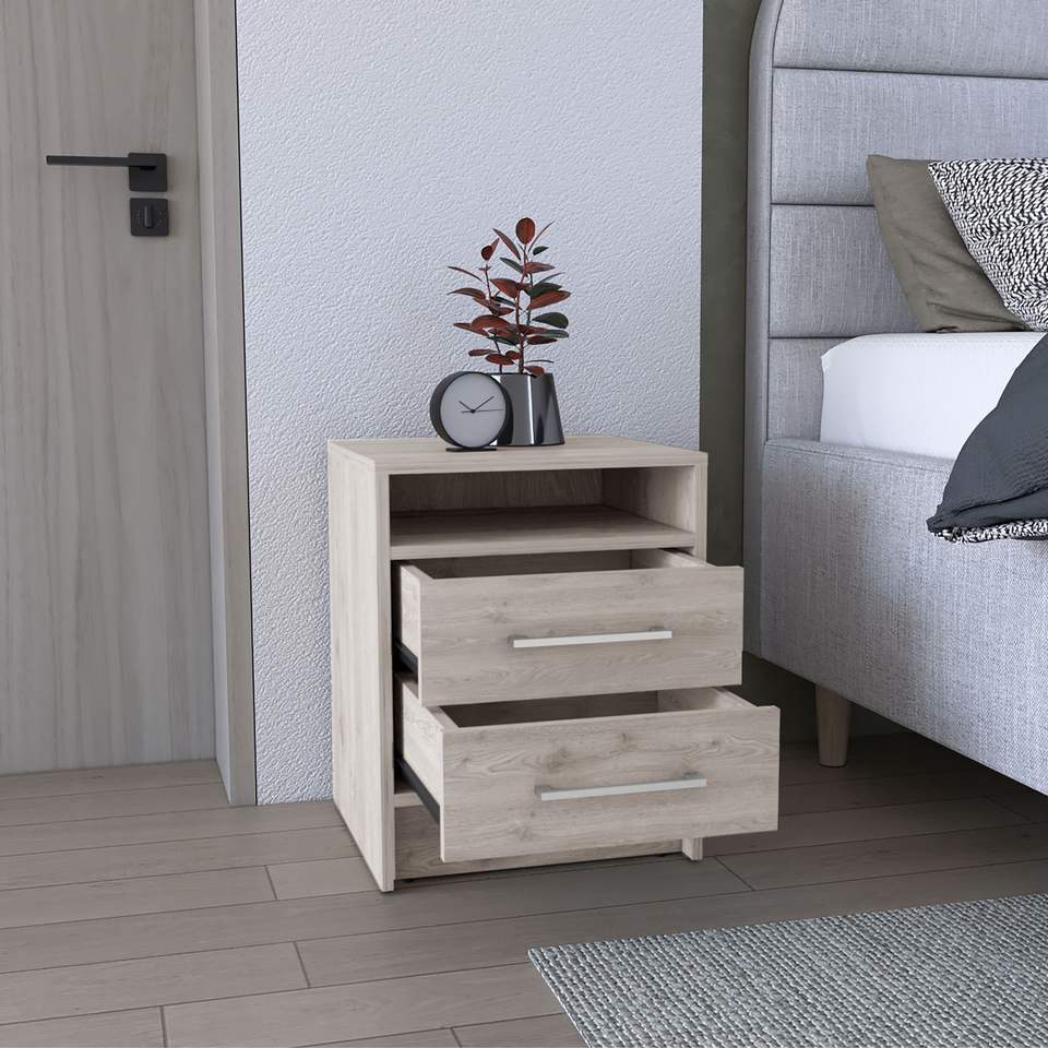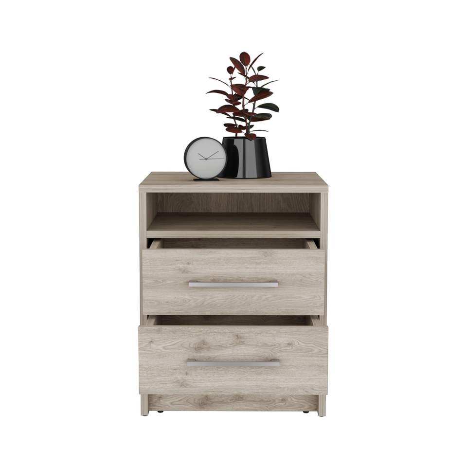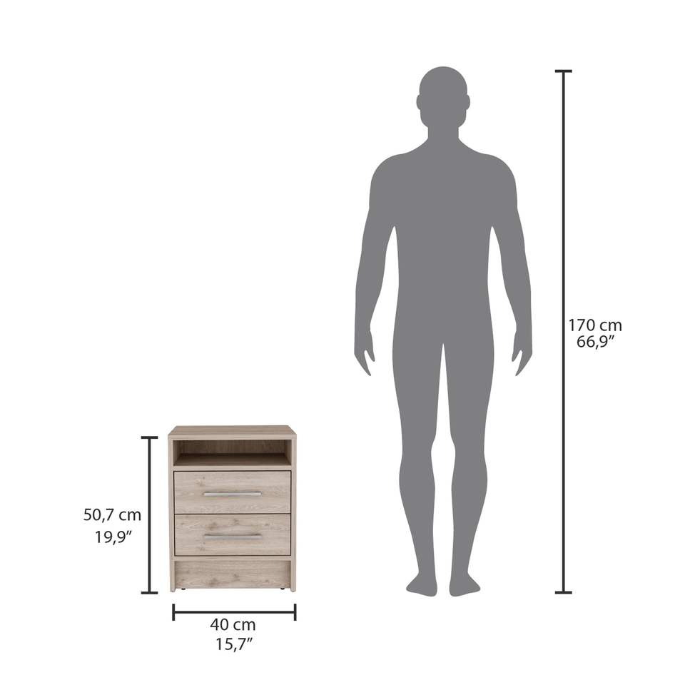 Comodino Eter Grigio Chiaro con Piano Superiore di Qualità Superiore e Due Cassetti, Utilizzabile come Tavolino o Comodino Laterale