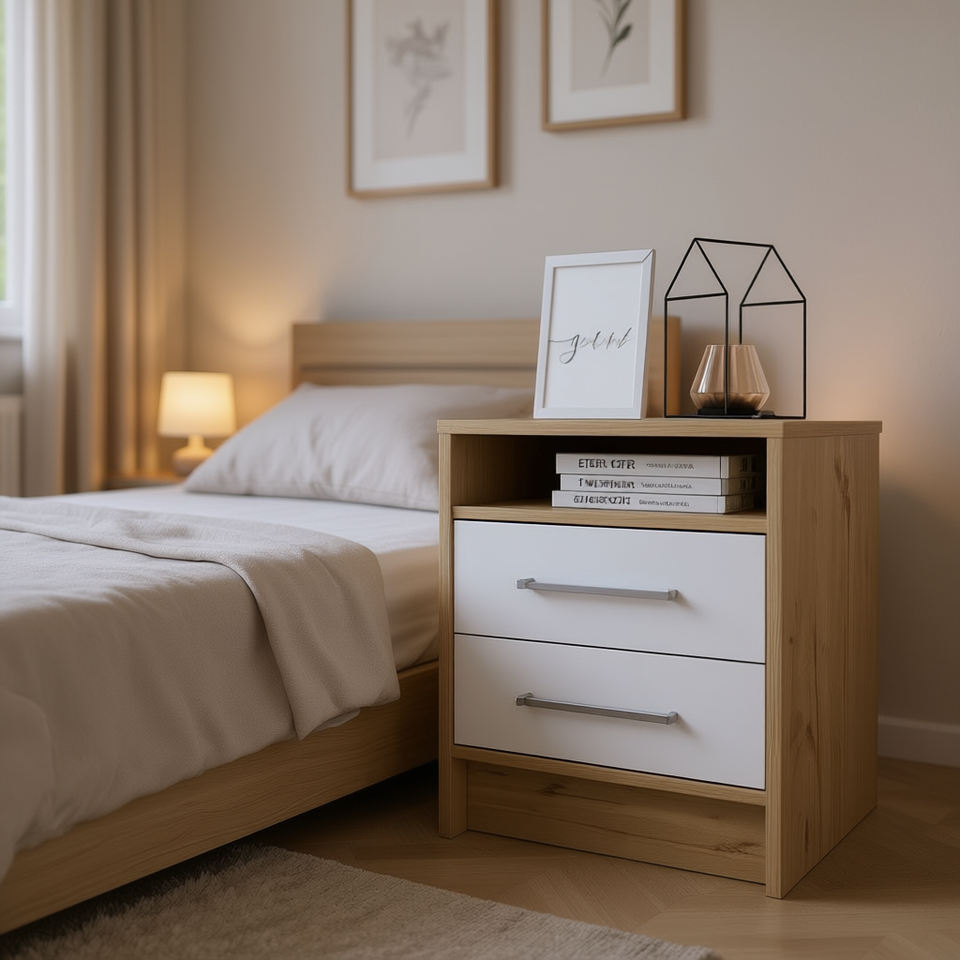Eter Superior Two-Drawer Nightstand White Light Oak Modern Bedroom Furniture