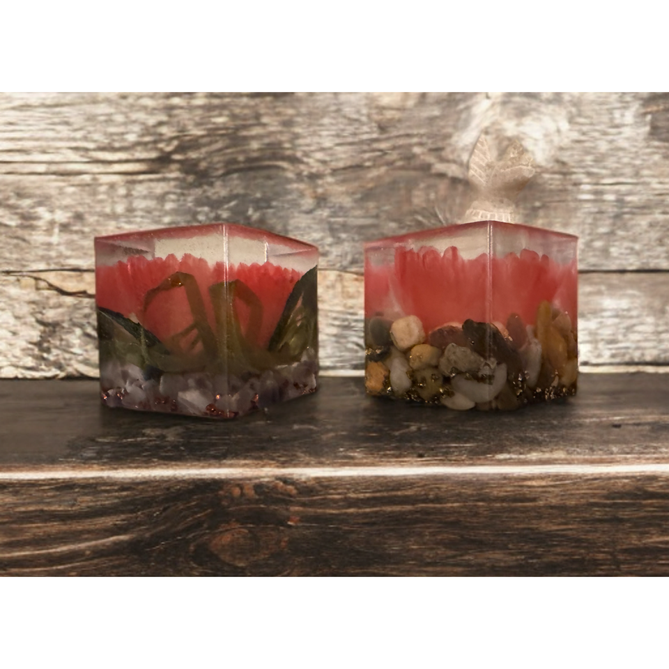 Eternal Bloom Cube Resin Material with Flowers and Stones-Paperweight & Decor Gift