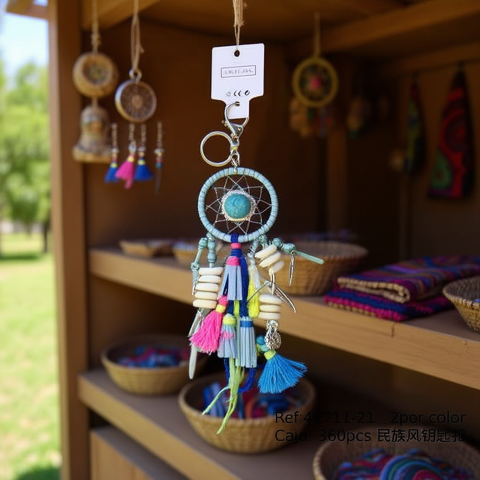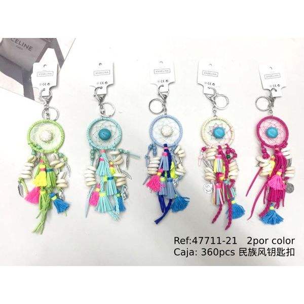 Portachiavi in stile etnico con acchiappasogni e nappa colorata, per borsa o auto, 2 pezzi per colore