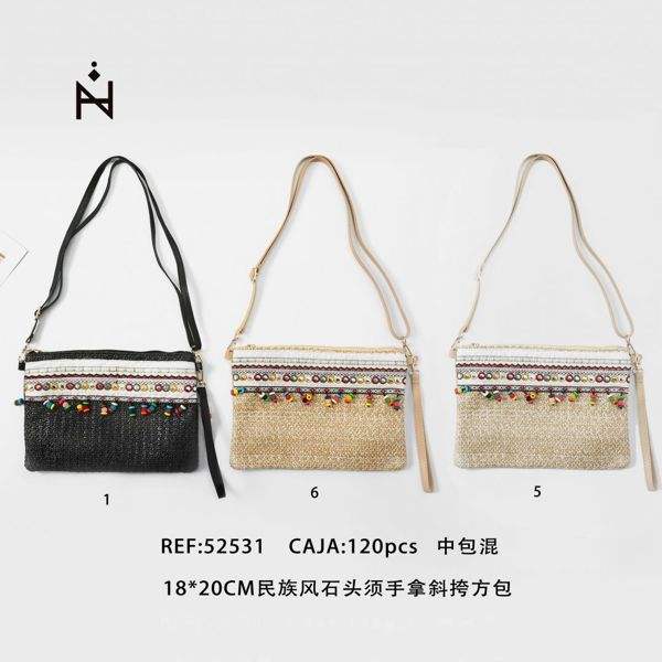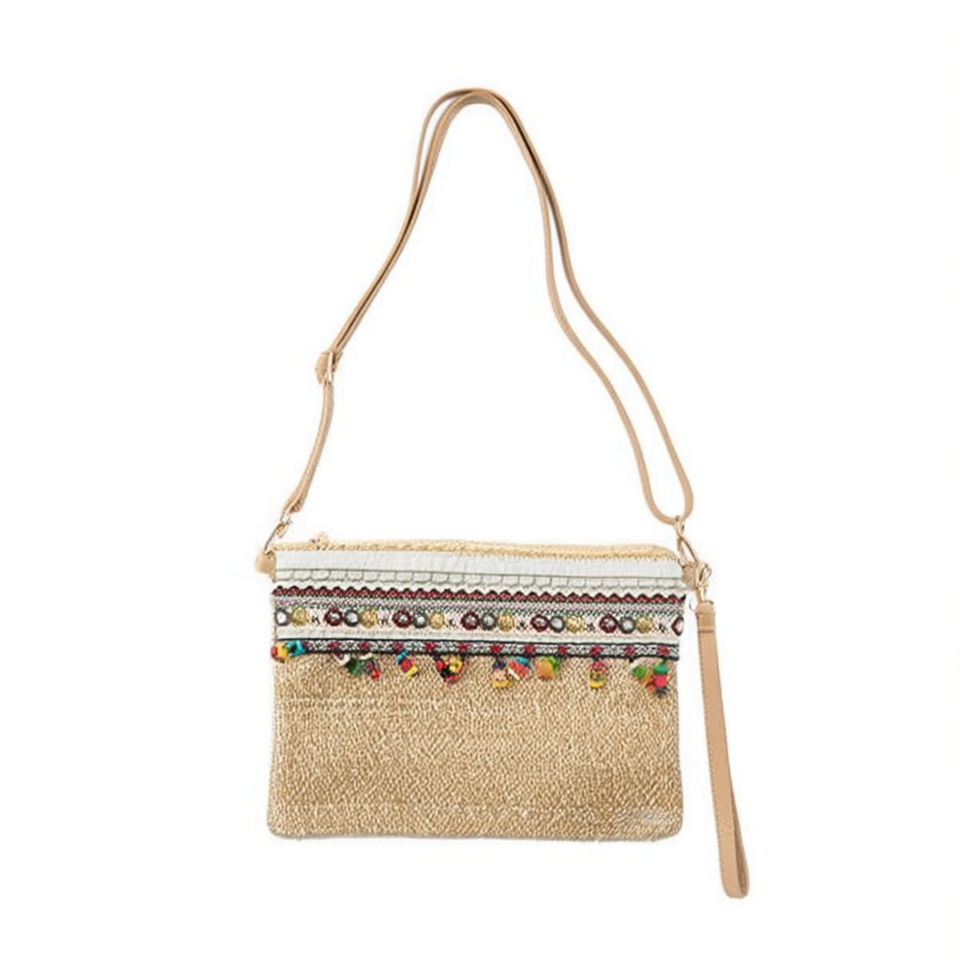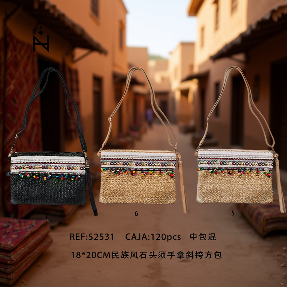 Borsa a Tracolla in Stile Etnico con Perline di Pietra 18x20cm BOLSO