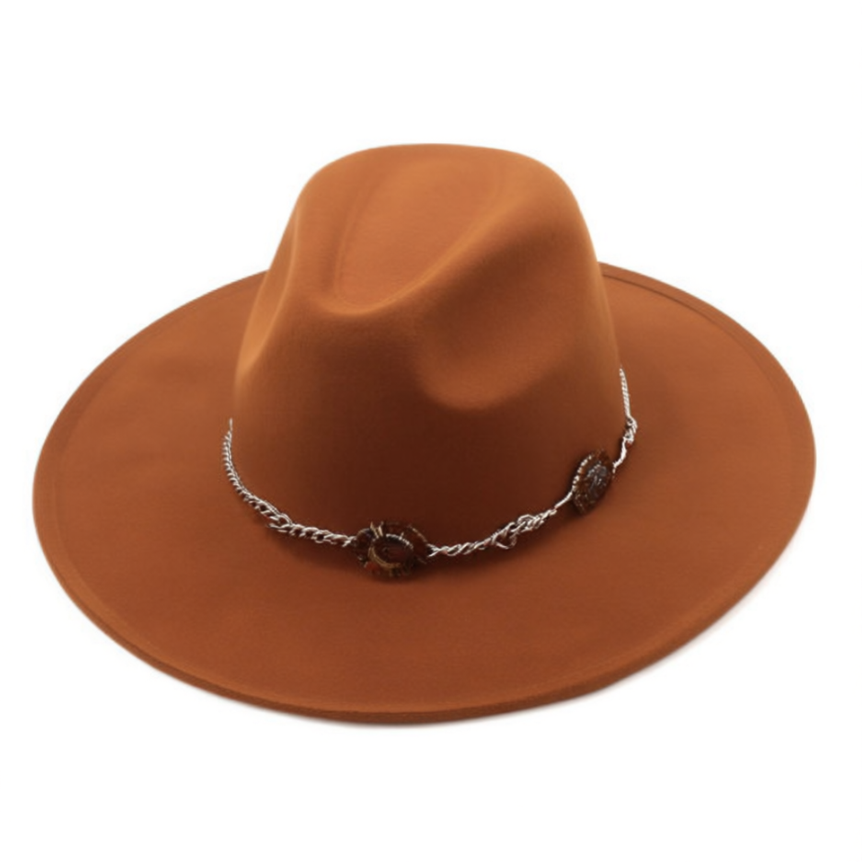 Cappello in feltro di lana stile etnico con decorazione a catena, taglia unica regolabile per tutte le stagioni
