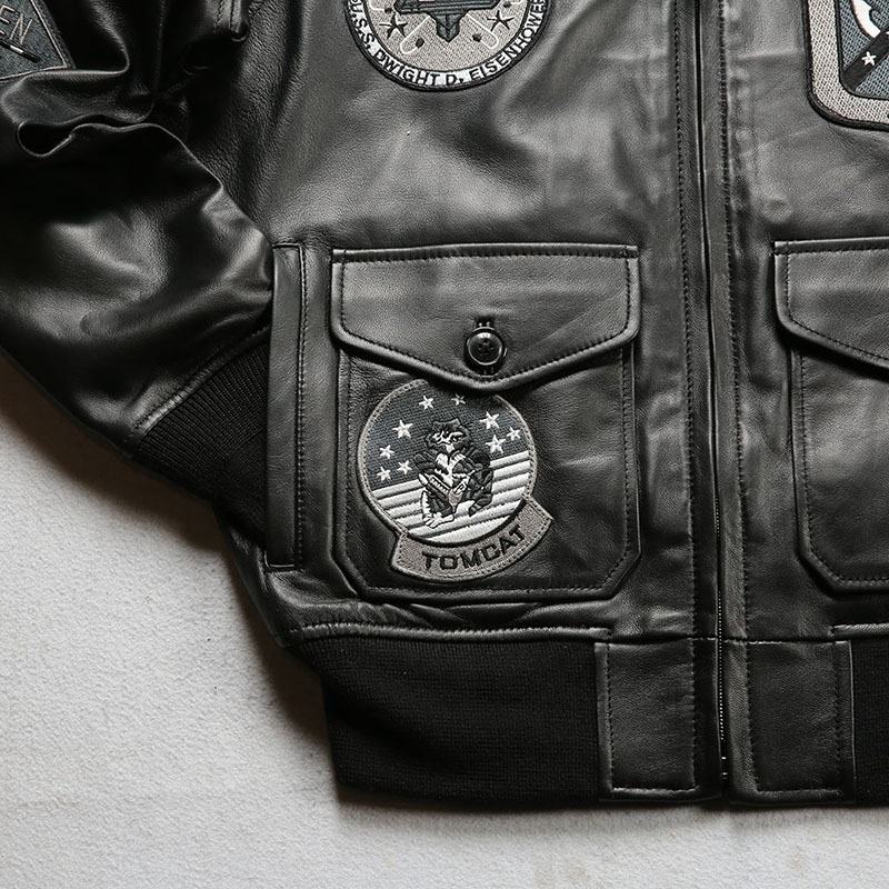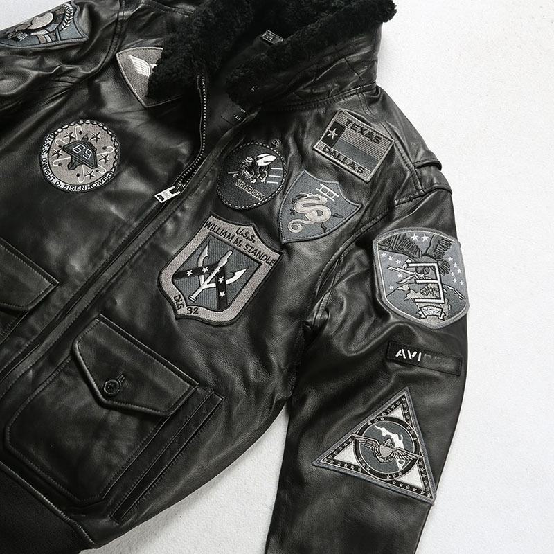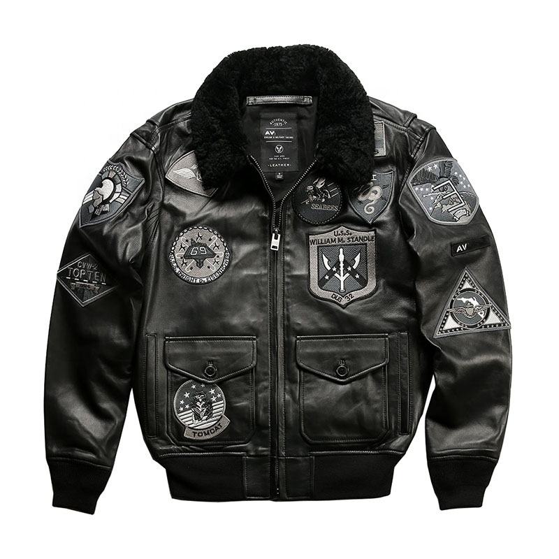 Giacca Bomber in Pelle di Pecora G1 di Alta Qualità con Ricami, Stile Europa America, Giacca in Vera Pelle di Agnello per Uomo, Abbigliamento in Pelle Autentica