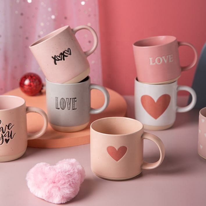 Set di tazze da tè in porcellana stile europeo tazza di latte rosa tazze da caffè in ceramica di San Valentino con design a cuore