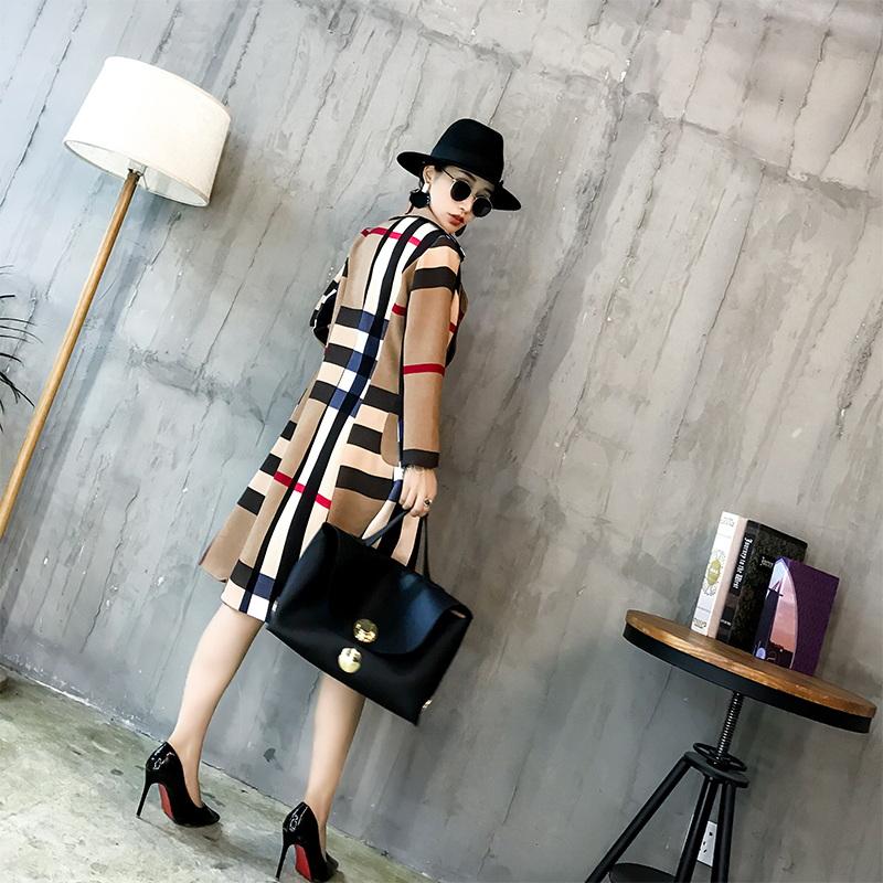 Europe and American Style Plaid Slimming Trench Coats for Lady Hot Sale New Color Matching Autumn Women Jackets and Coats