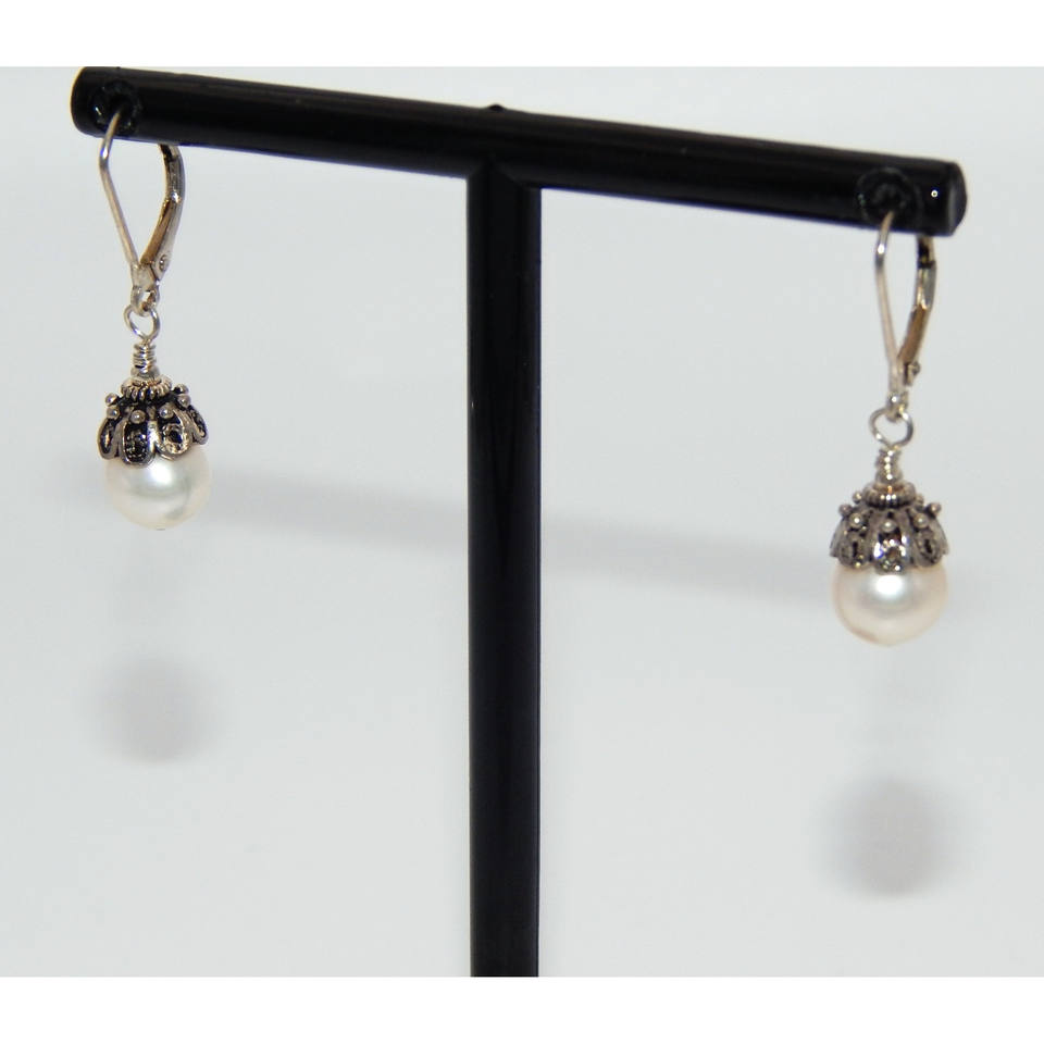 European .925 Sterling Silver Dangle Earrings & Intricate Cultured Pearl Drops