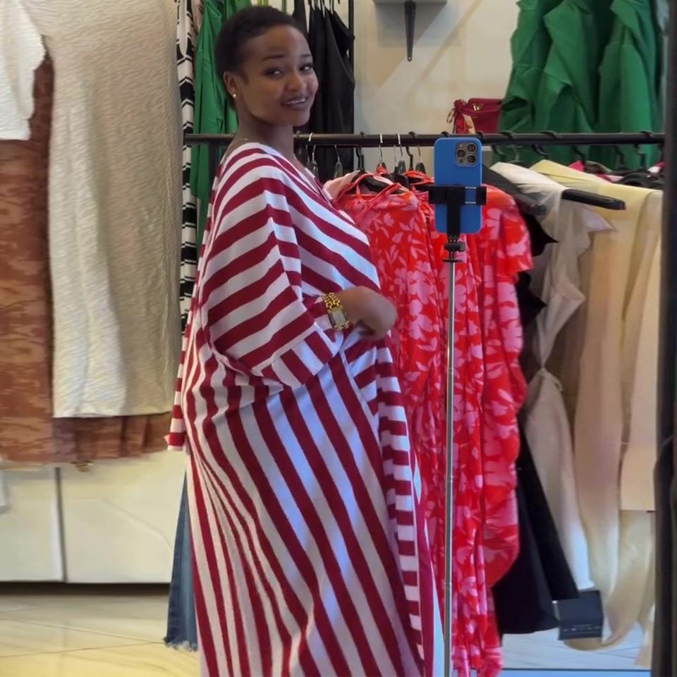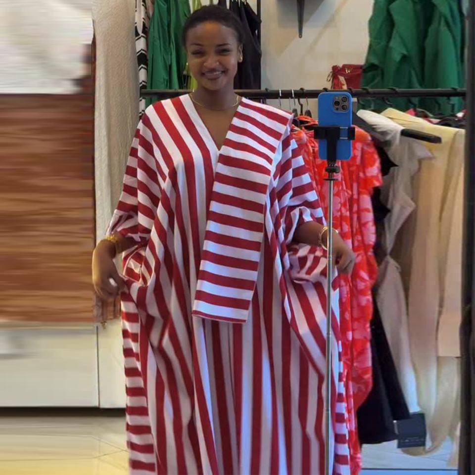 European American Cross-border Women's 2026 Spring New African Women's Loose Striped V-neck Bat Sleeve Casual Leisure Long Dress
