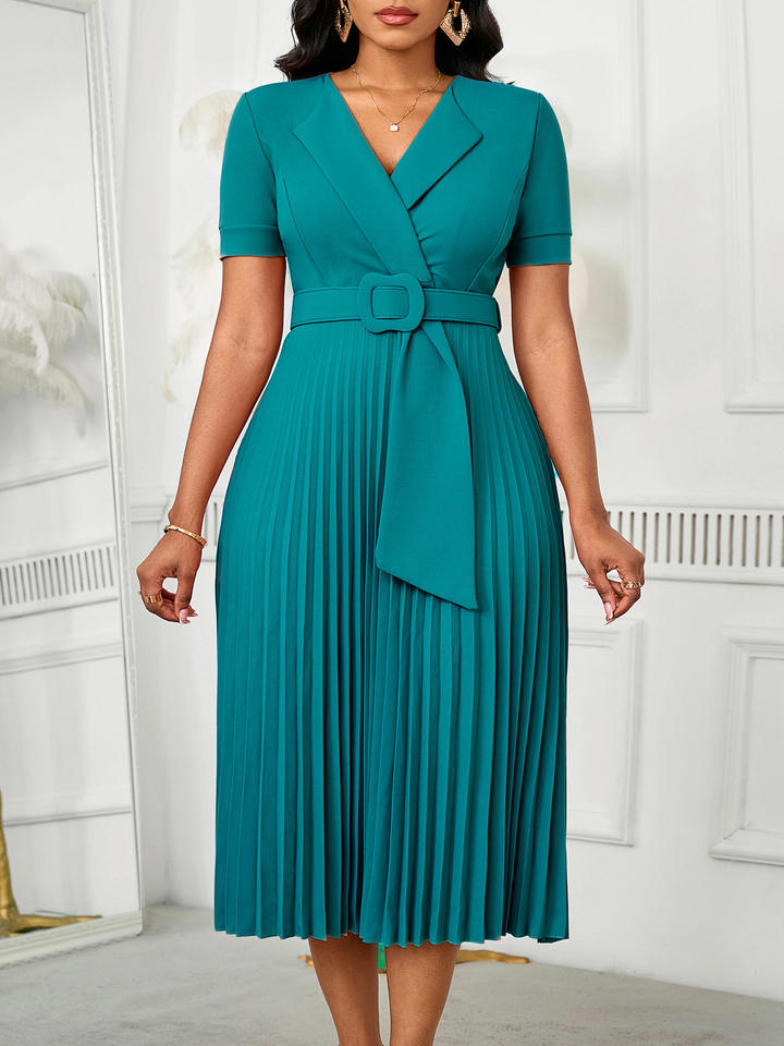 European American Elegant Pleated Career Dresses Sexy Short-Sleeved V-Neck with Ruffles High-Waisted Large Size for Summer