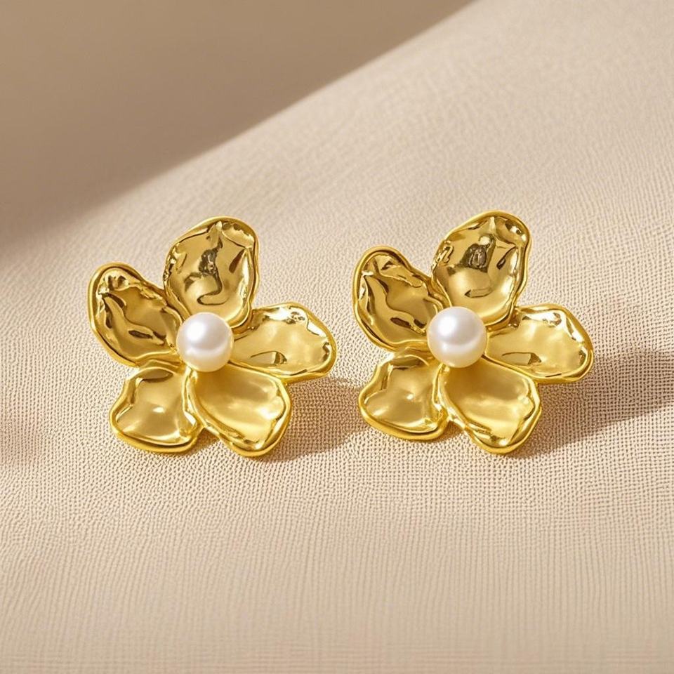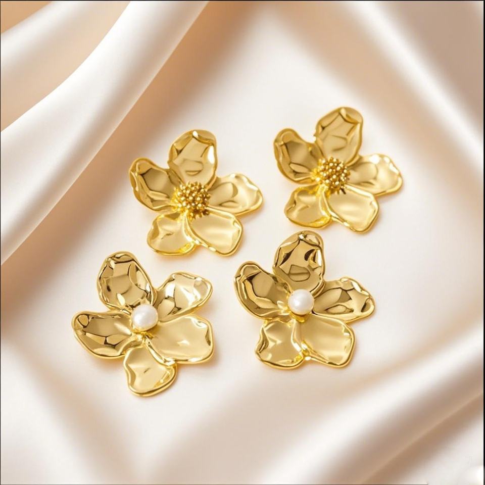 European American Fashion 18K Stainless Steel Flower Earrings High-End Trendy All-Match for Women Non-Fading Anniversary
