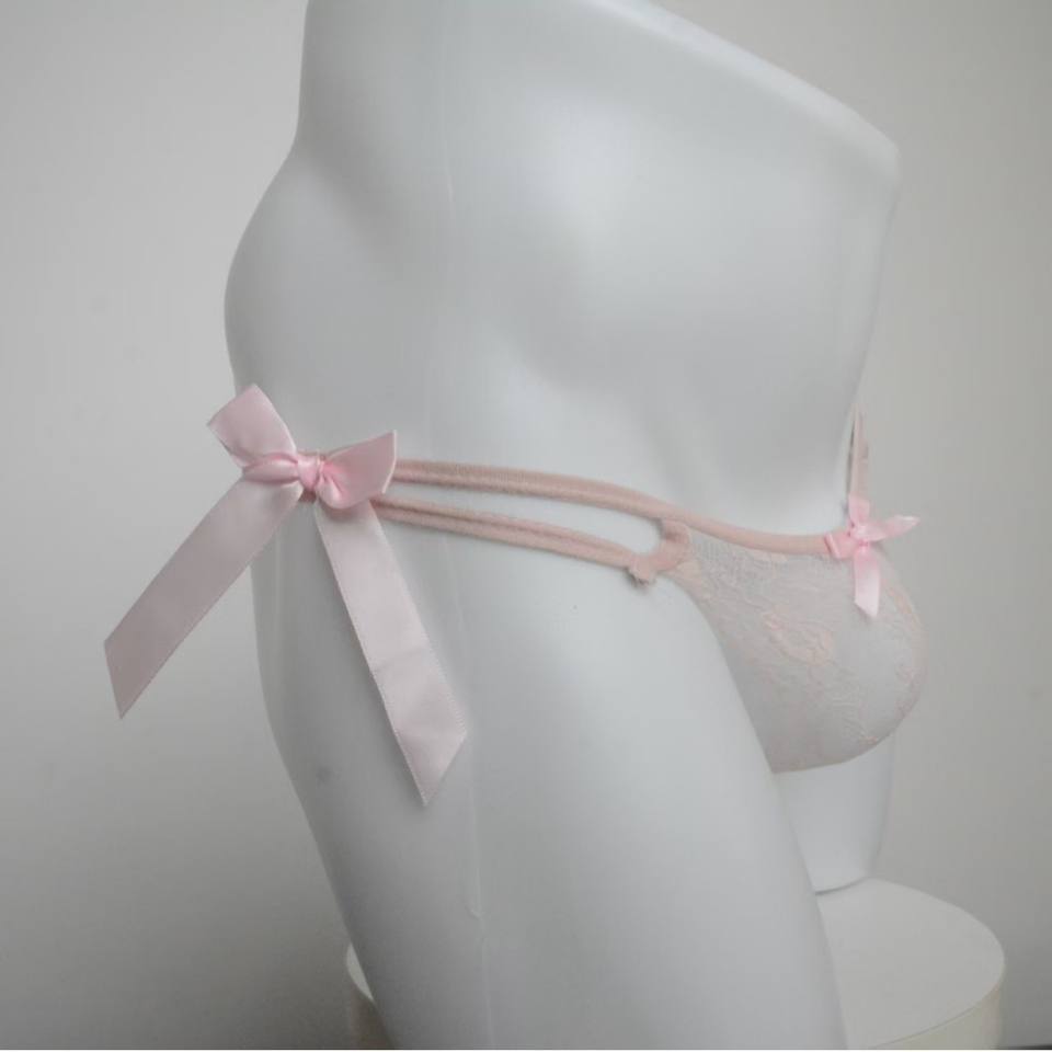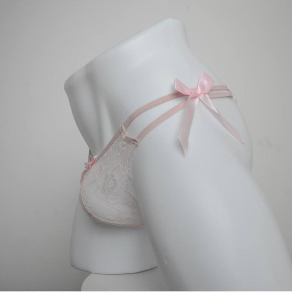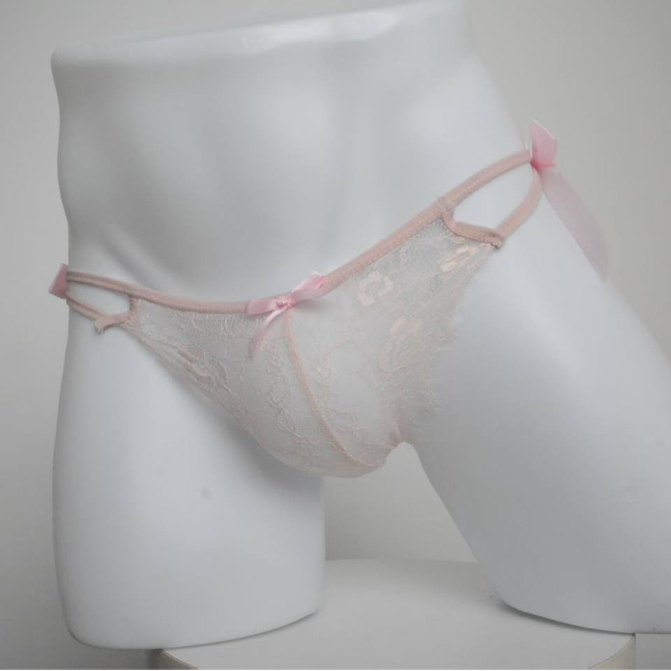 European American Men's Thong Sexy Low-Rise T-Pants Lace Floral Pattern Pink Lace Polyester Underwear Erotic JJ Set Breathable