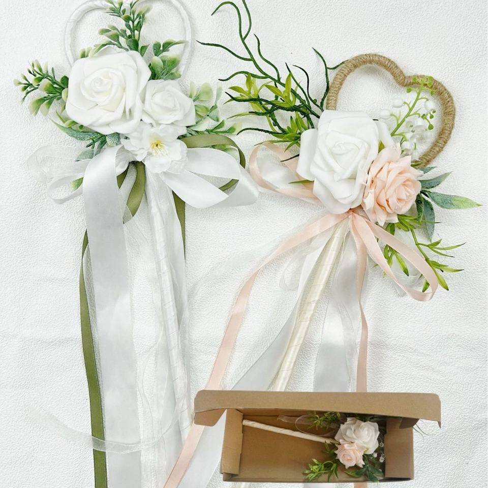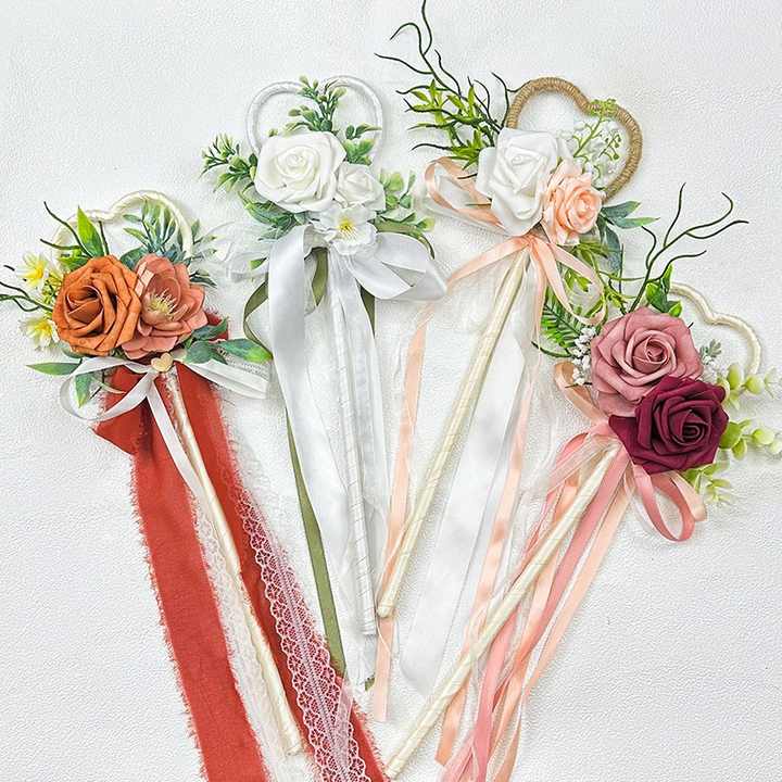 Bouquet da Sposa in Stile Europeo-Americano con Rose a Forma di Cuore, Bacchetta Magica per Bambini