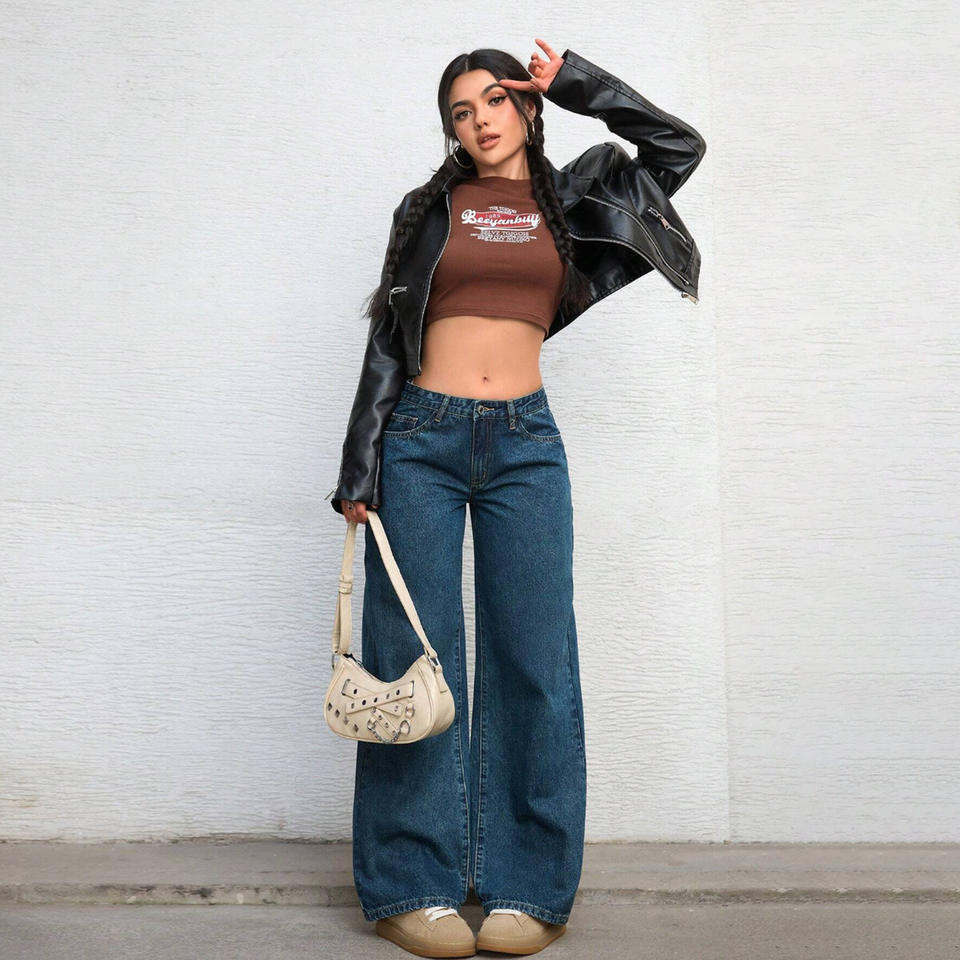 European American Style Women's Low Waist Wide Leg Jeans 2025 New Slimming Floor-Length Straight Versatile Retro Design for All