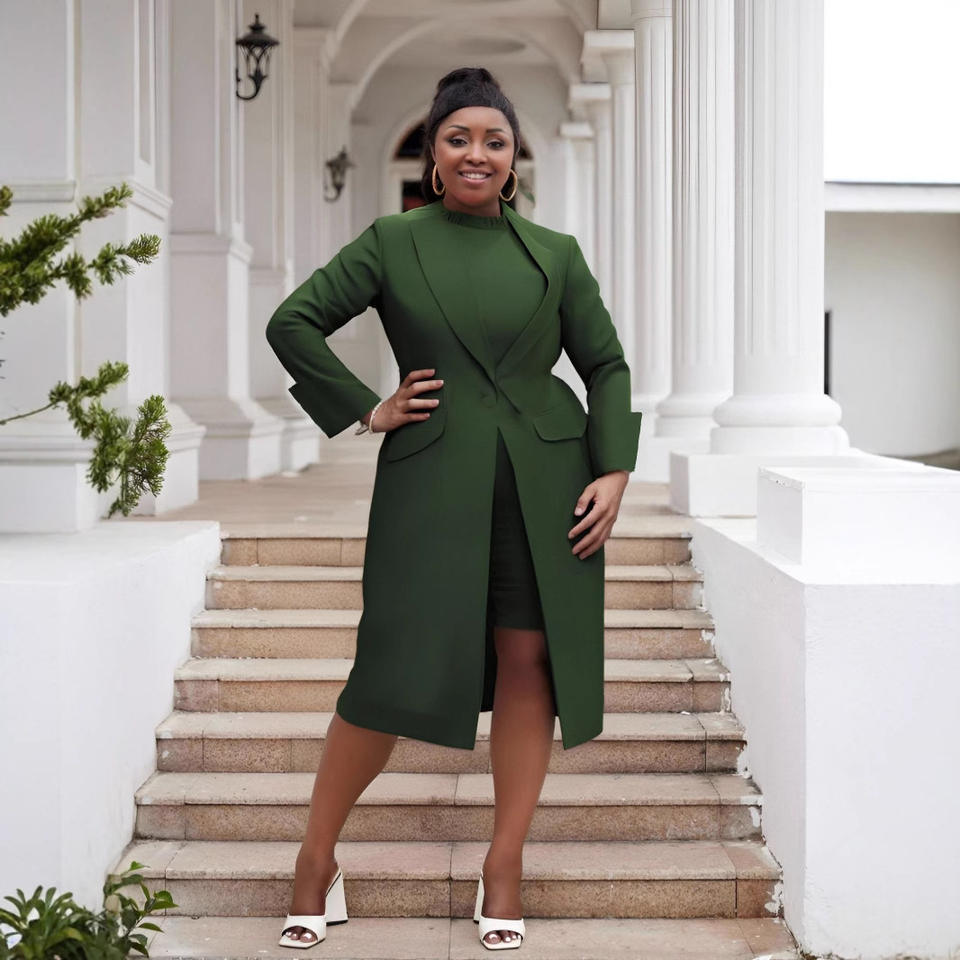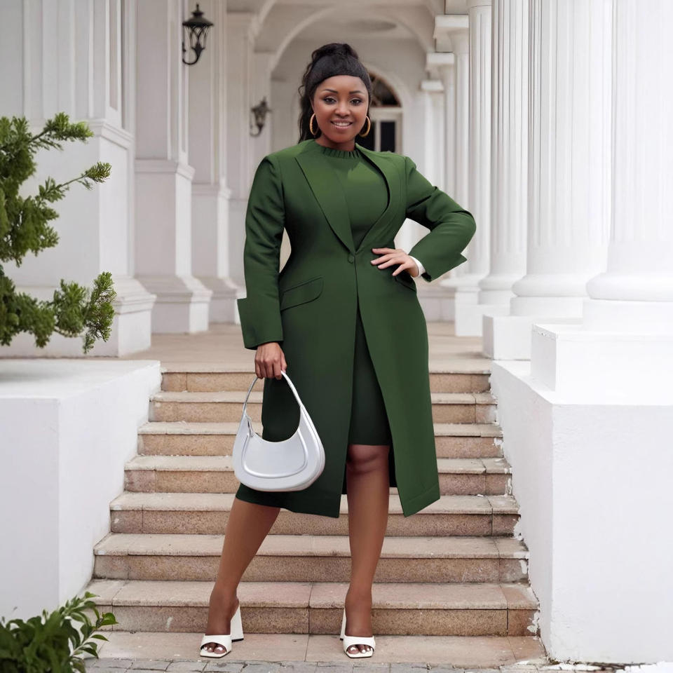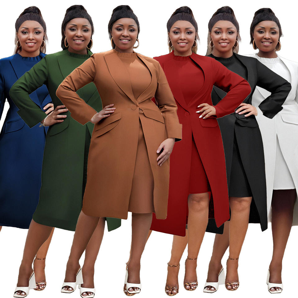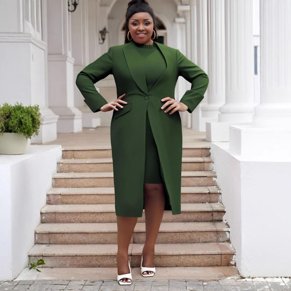Stile europeo americano donna taglie forti nuova moda pendolare due pezzi Set gilet Blazer stringe vita gonna girocollo girocollo