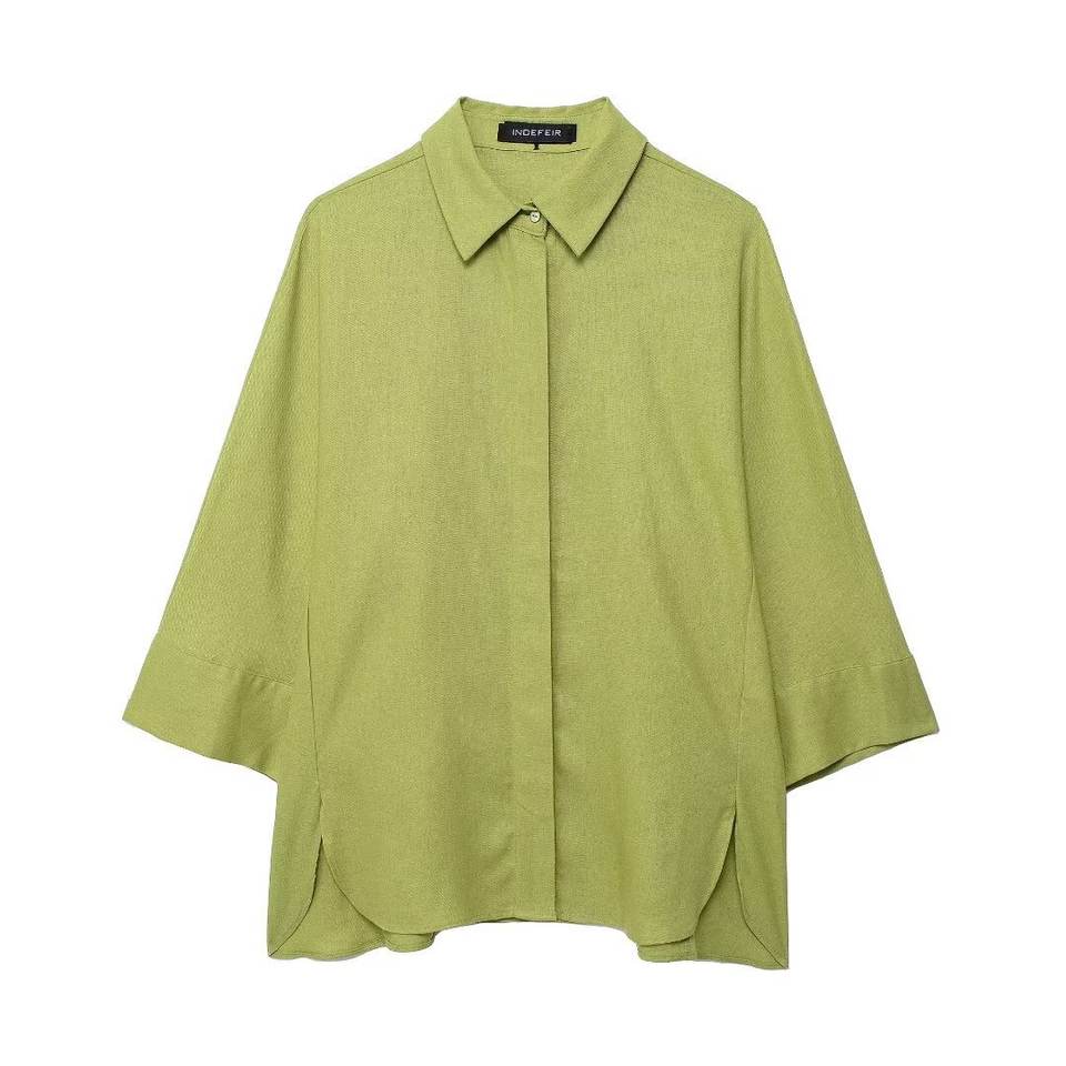 Camicia di lino a maniche larghe da donna stile europeo americano pantaloni lisci elastici commercio estero transfrontaliero