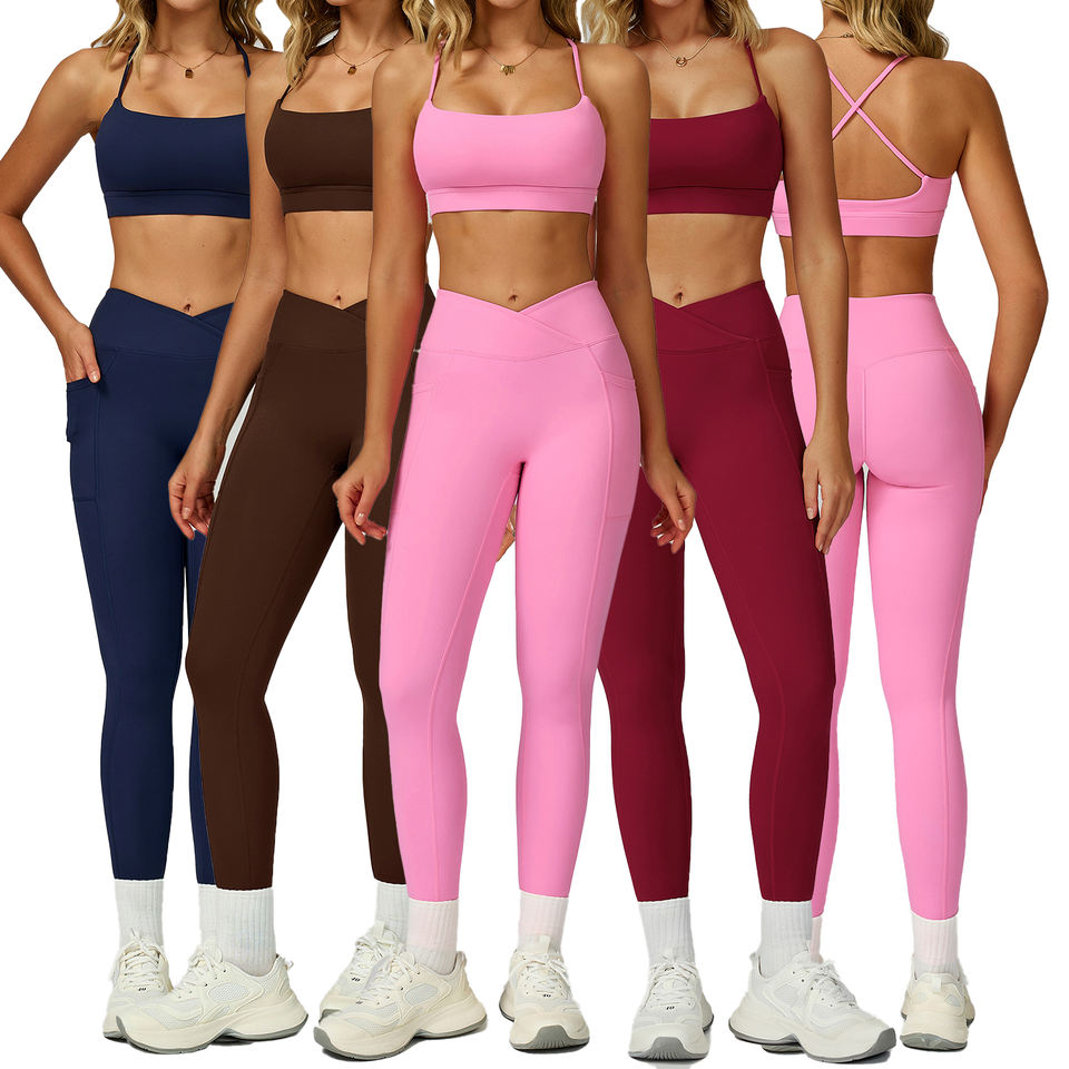 Set di Fitness per Lifting a vita alta da donna europea americana completi da Yoga attillati a vita incrociata altamente elastici per l'estate