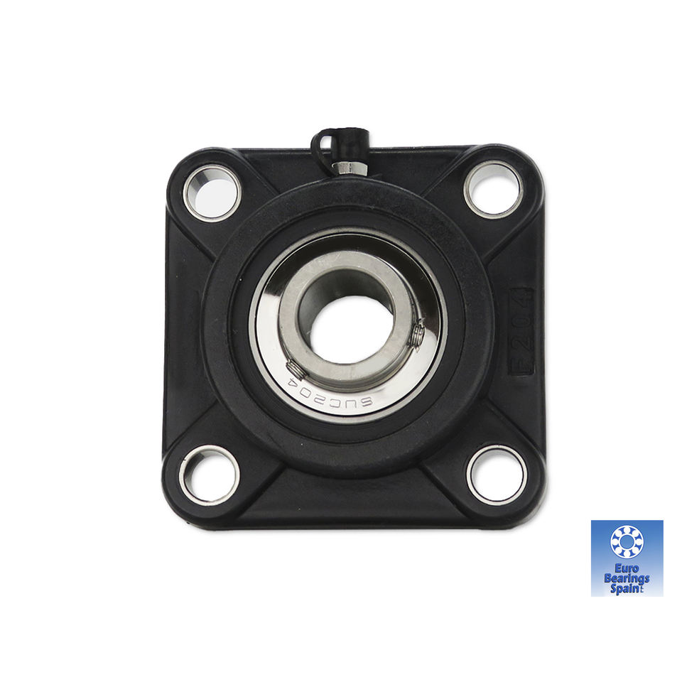 Distributore Europeo B2B di Supporti in plastica nera con cuscinetto in acciaio inox – Modello UCF-204 PLASTICA NERA + UC INOX