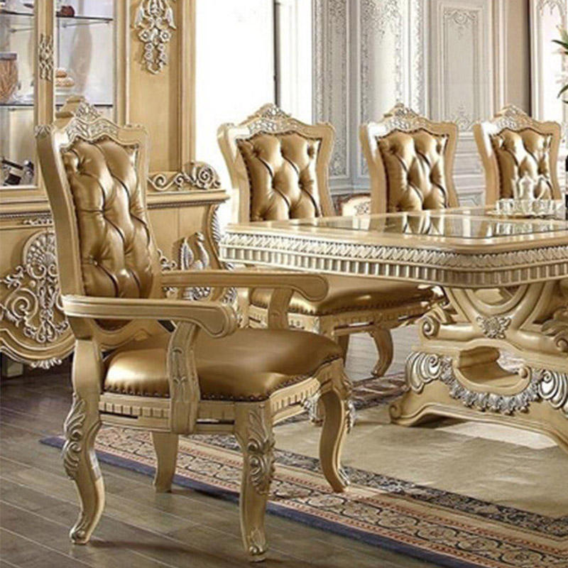 European Classic Wooden Dining Table With 6 8 Chair Vintage Kitchen Furniture Complete Luxury Dinning Area Set for 10 12 Seater