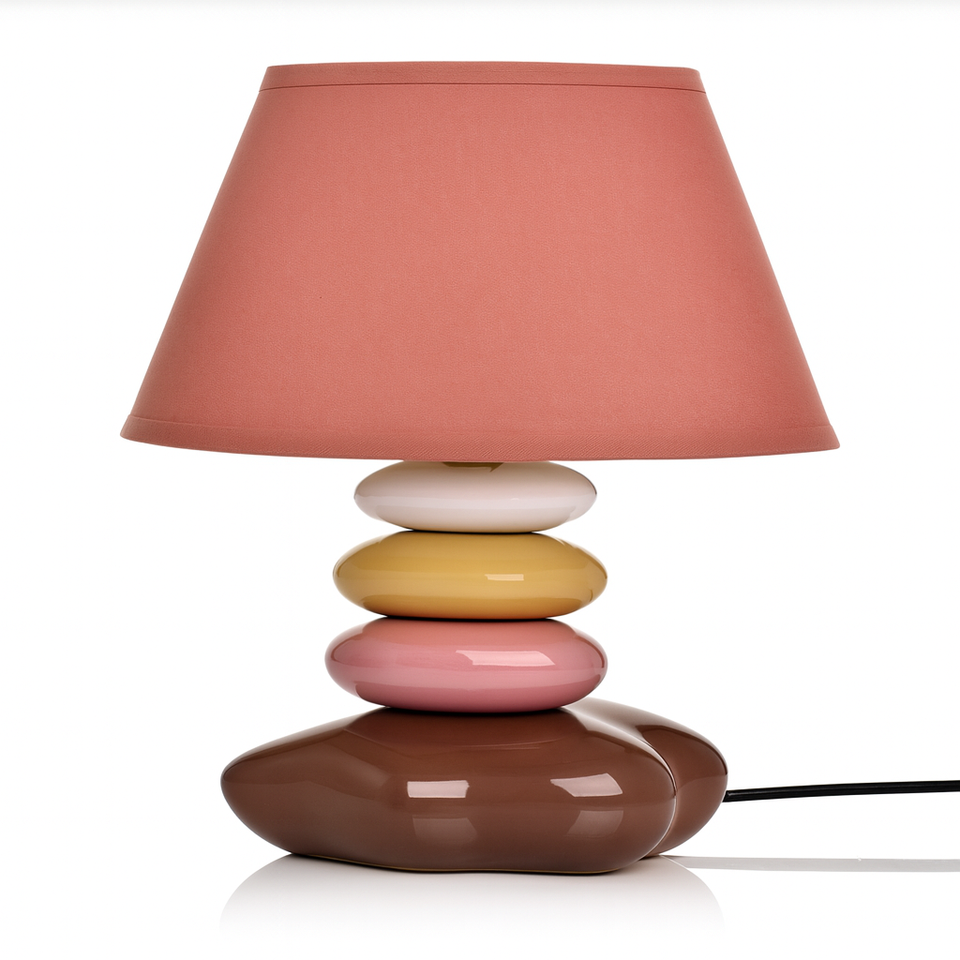 European Multicolor Ceramic Table Lamp with Stone Design Base, Contemporary Home Decoration Bedside Desk Light AC Powered