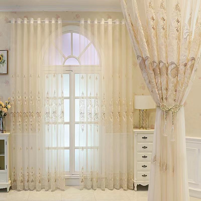 Tende Trasparenti Ricamate con Motivi Floreali in Stile Europeo, Drappeggi in Voile per Soggiorno, Sala, Villa, Decorazione in Tulle