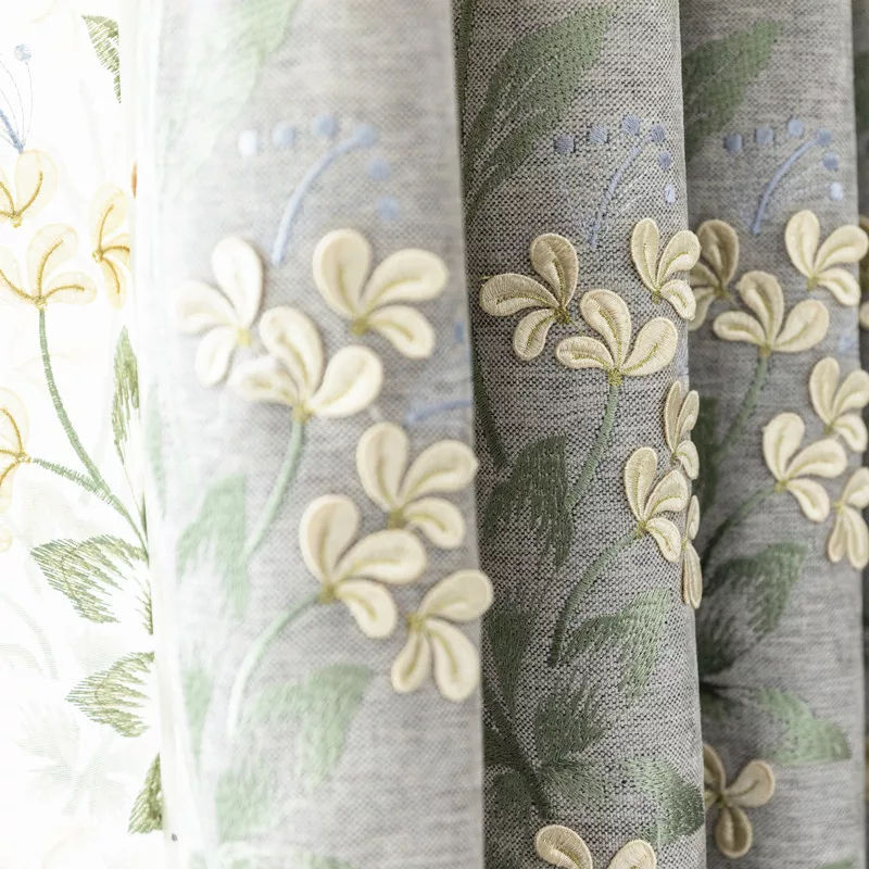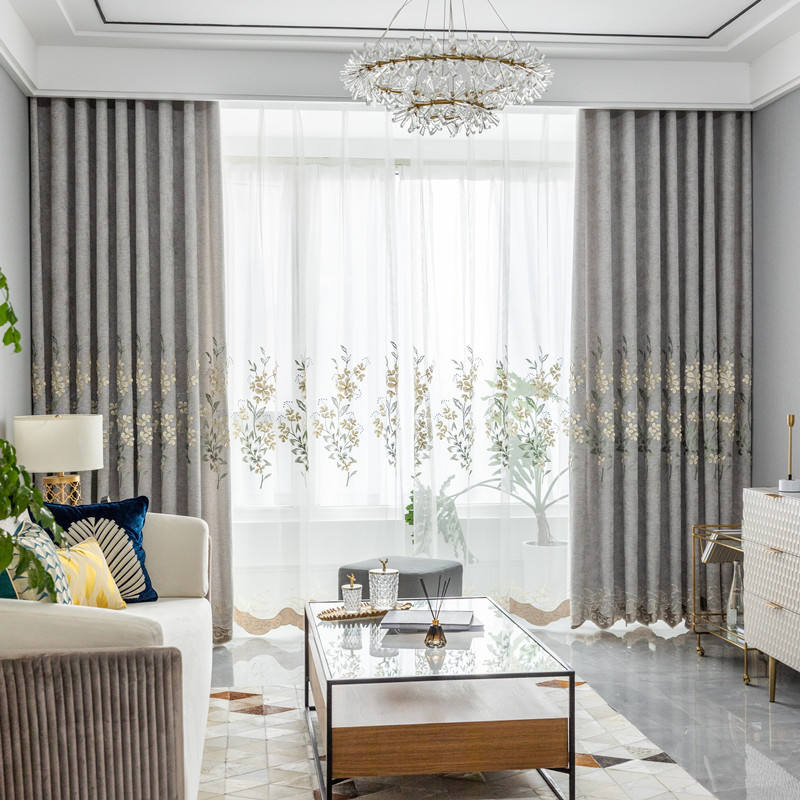 Europeo grigio salotto di cotone e lino ciniglia ricamata tende finito camera da letto studio tende di screening finestra
