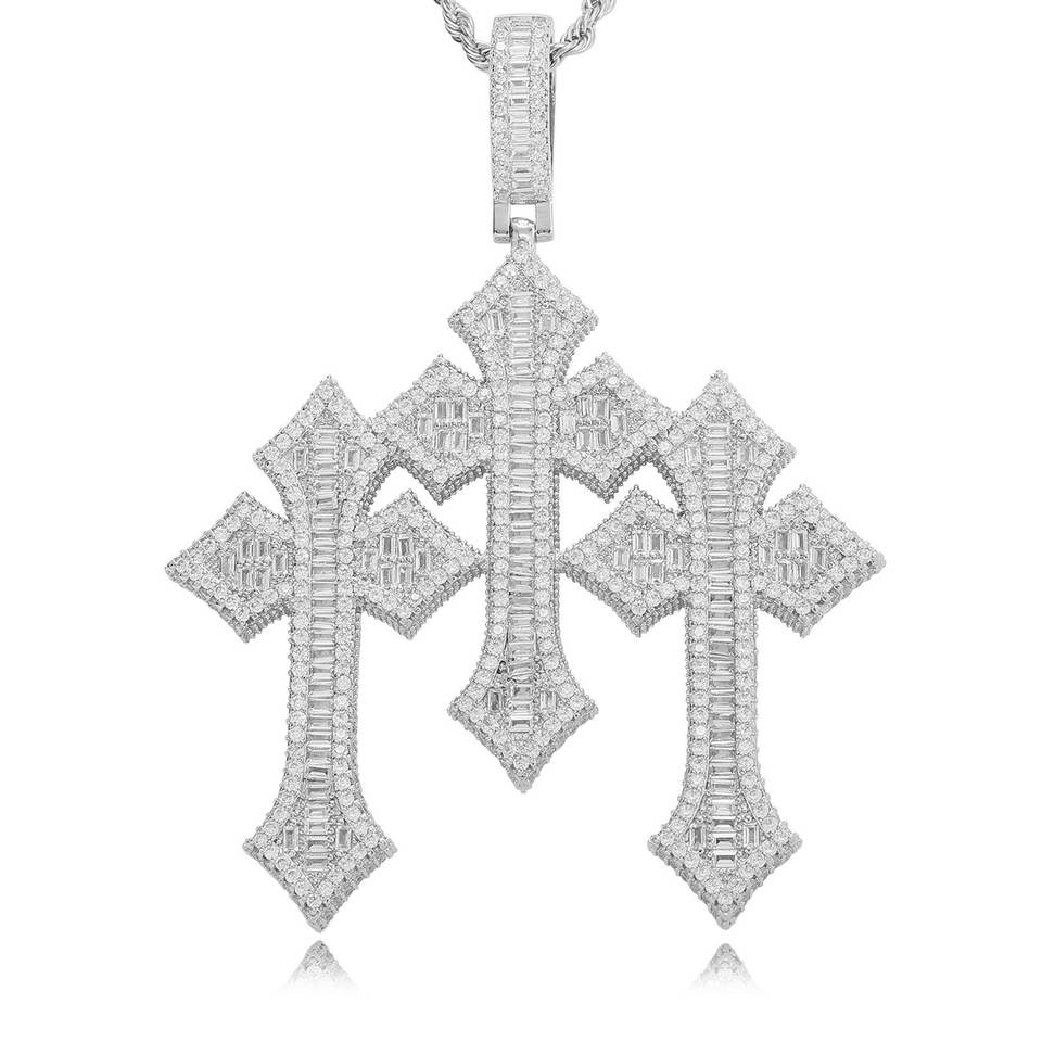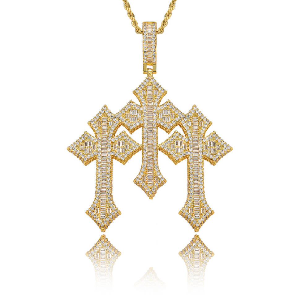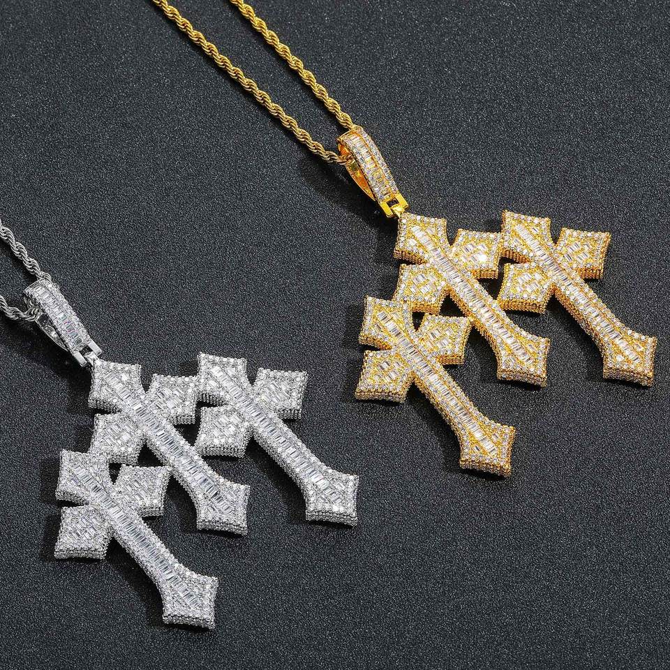 Collana da Uomo con Pendente a Croce Hip Hop Europeo, in Rame con Zirconio Quadrato a Scala, Accessori per Orecchie, Gioielli Abbinati