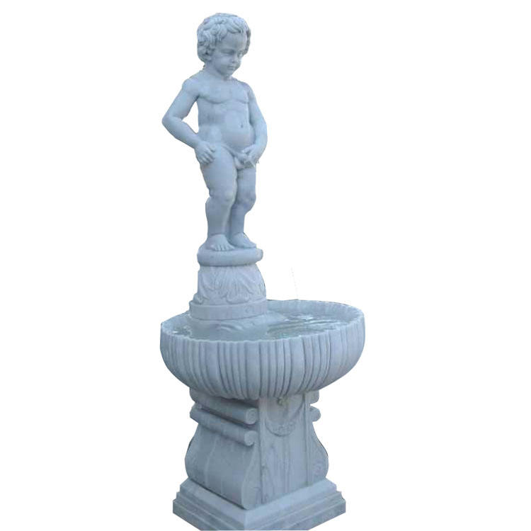 European Indoor Outdoor Garden Decoration Large White Marble Stone Water Fountains With Nude Angels Peeing Pissing Boy Statue